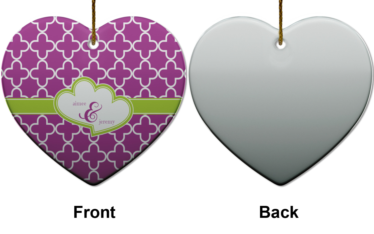 Have a happy holiday and share the joy of Christmas with your loved ones by hanging up personalized ceramic ornaments! Ornaments add a touch of who you are and the things you love onto the Christmas tree! Create custom ornaments for the kids and have them hang up their own star with their name, or pay remembrance this holiday to missed loved ones with our ceramic heart ornament. Browse many of our unique designs and customize them the way you'd like! From monograms, logos, and patterns, we have it all! You can even upload a photo of your family for us to print onto the ornament! The possibilities are endless!