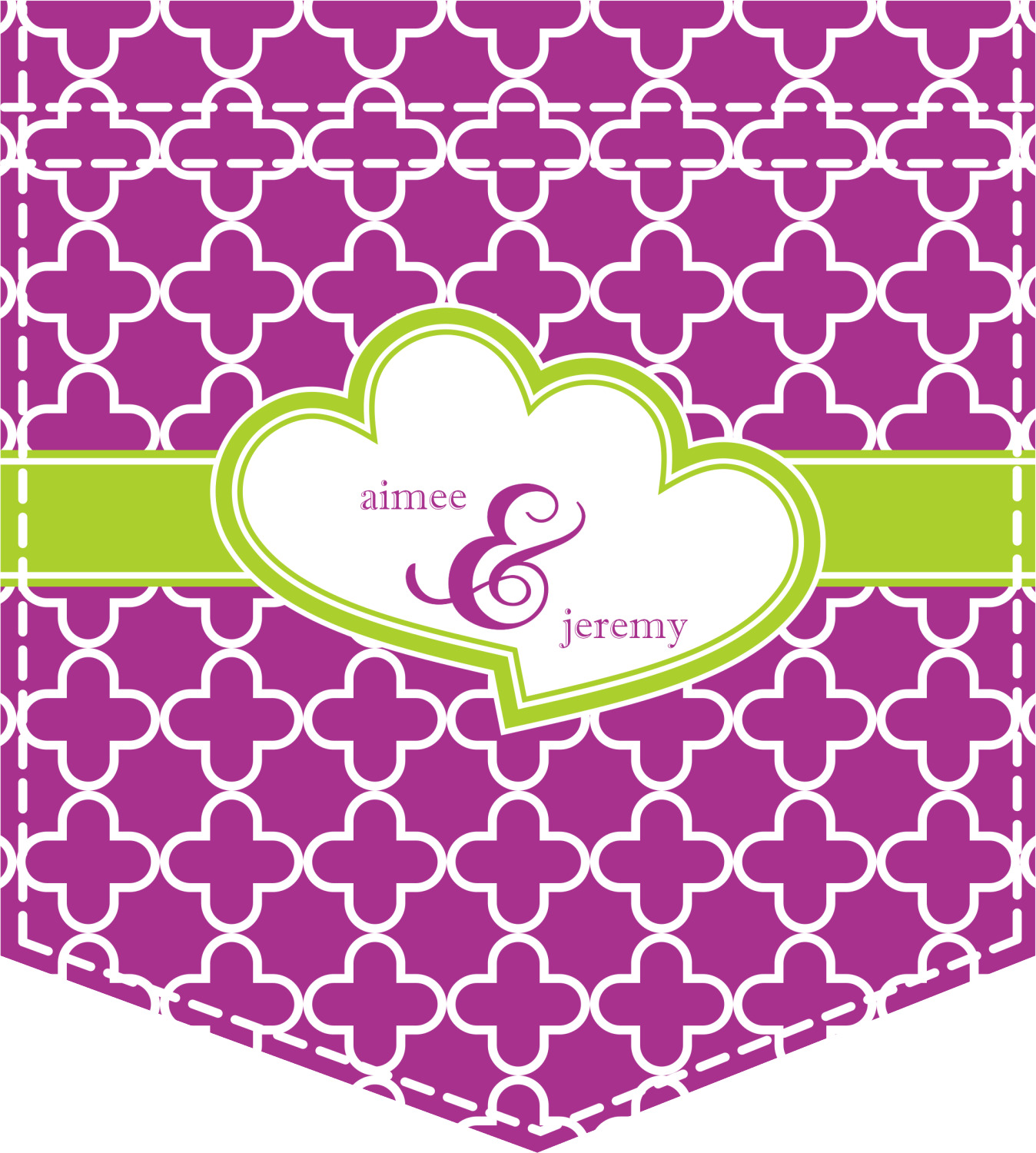 Our no sew faux pockets are easily customized by you. Our customization system allows you to change the personalization from a name to a monogram or to a name & initial or remove it completely. You can also change the colors, fonts, graphics, backgrounds etc. You can also upload your own picture / image or logo or we can custom create one for you or your event.