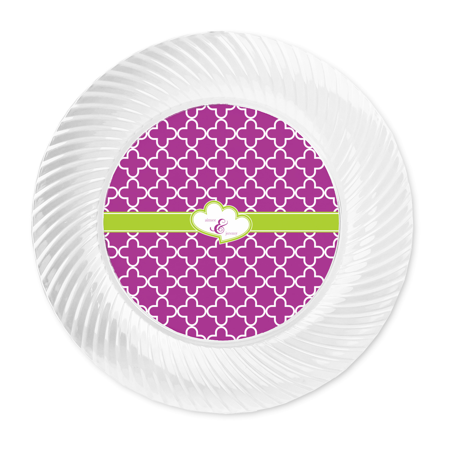 Made from a beautiful clear plastic plate as a base, your design is printed to the underside of the plate. The outside of these disposable plates has a classic swirl texture to it for a high quality look and feel.