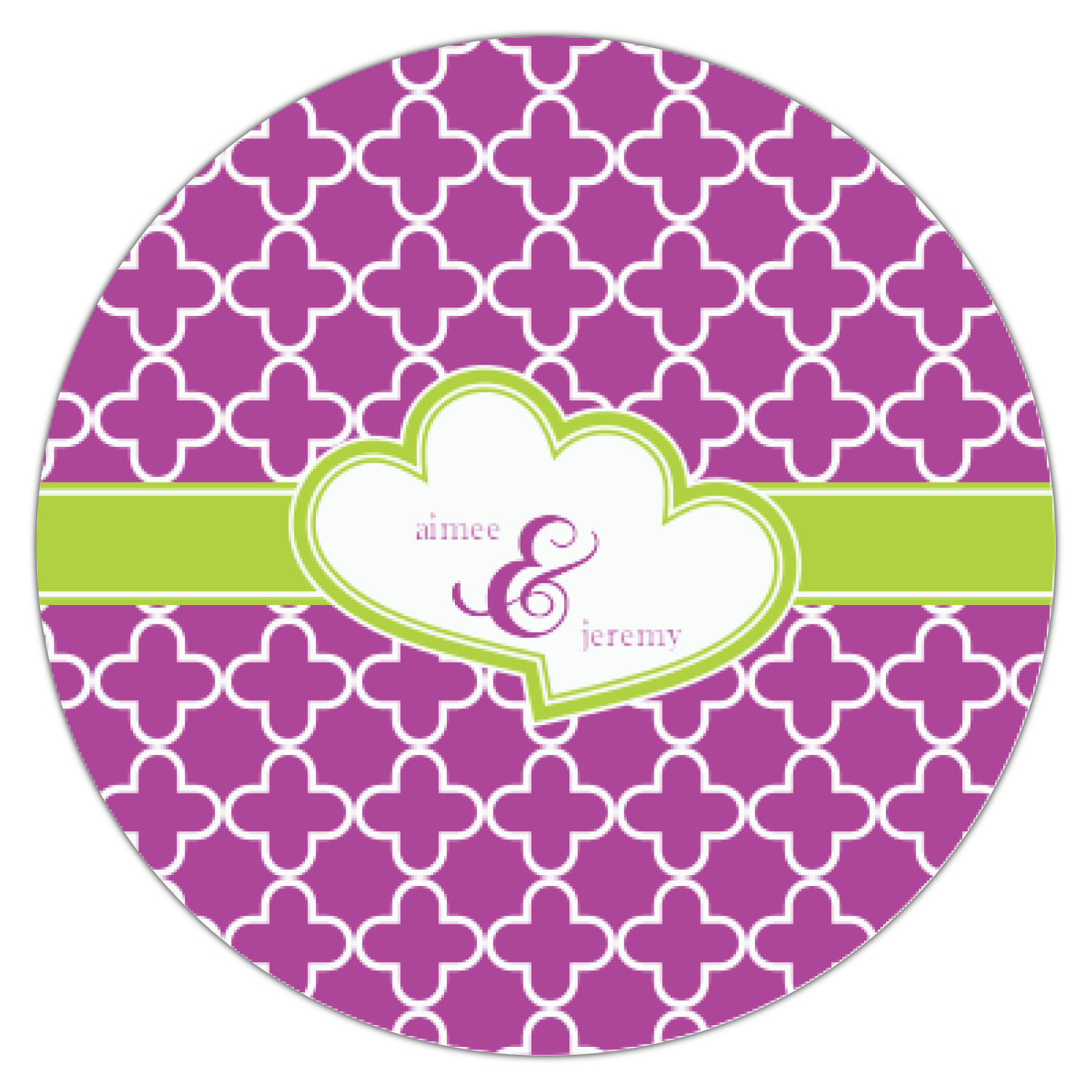 The lime green ribbon provides a sharply contrasting color that draws attention to the double-heart label, the perfect place for his & hers names.