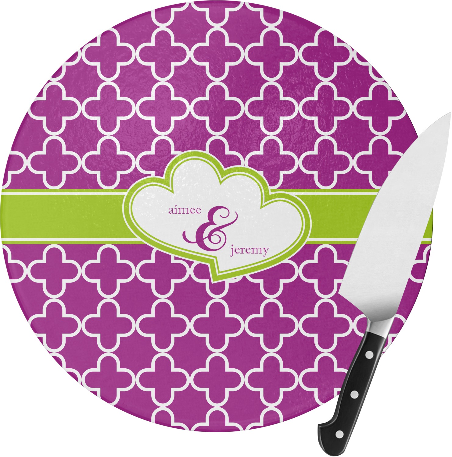 Prep your meals with passion when you use our personalized round cutting boards. The personalization options we offer really make them one of a kind and they are available in delightful colors and designs that might just keep you smiling instead off crying when you're cutting onions!!