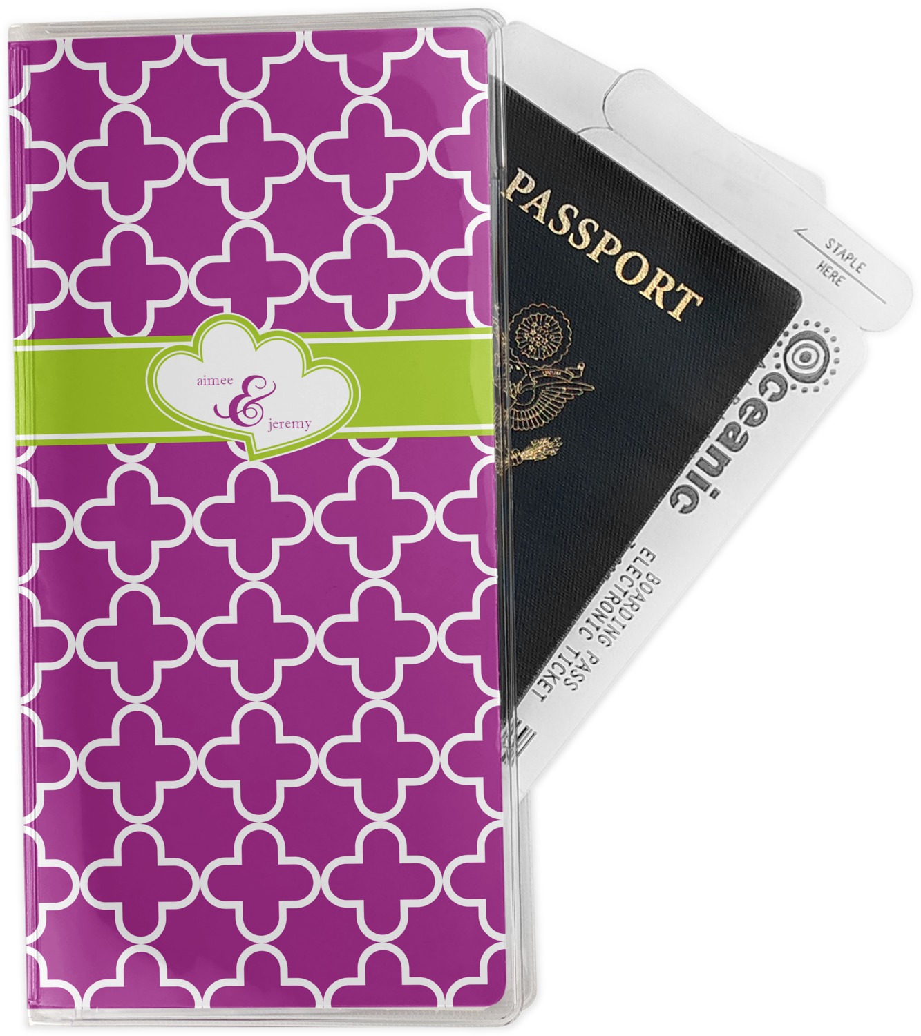 This document holder is really sturdy and has your personalized design inserted right behind all of your nifty pockets, so you can see it on the front and back covers. There are two large pockets and two shorter pockets inside. The larger pockets are tall enough to keep your boarding pass nice and straight. The smaller pockets (on top of the large pockets) are large enough to fit your passport, credit card, or ID.