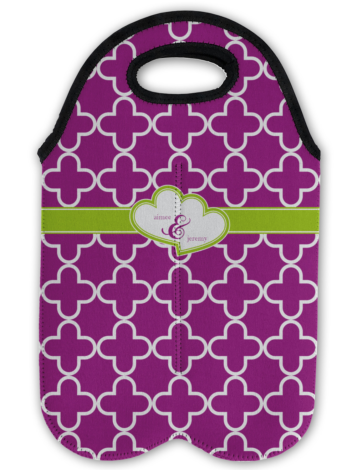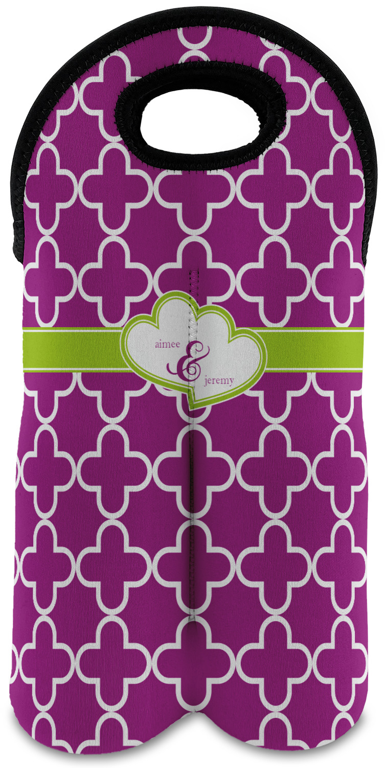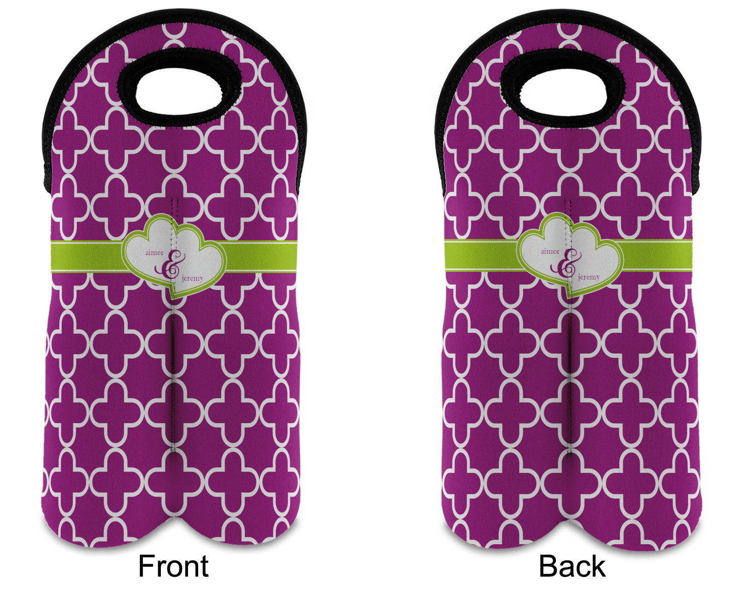 These tote bags are insulated to keep the bottles cold and have a stitched separation down the middle and double handles to keep the two bottles safe and secure during travels.