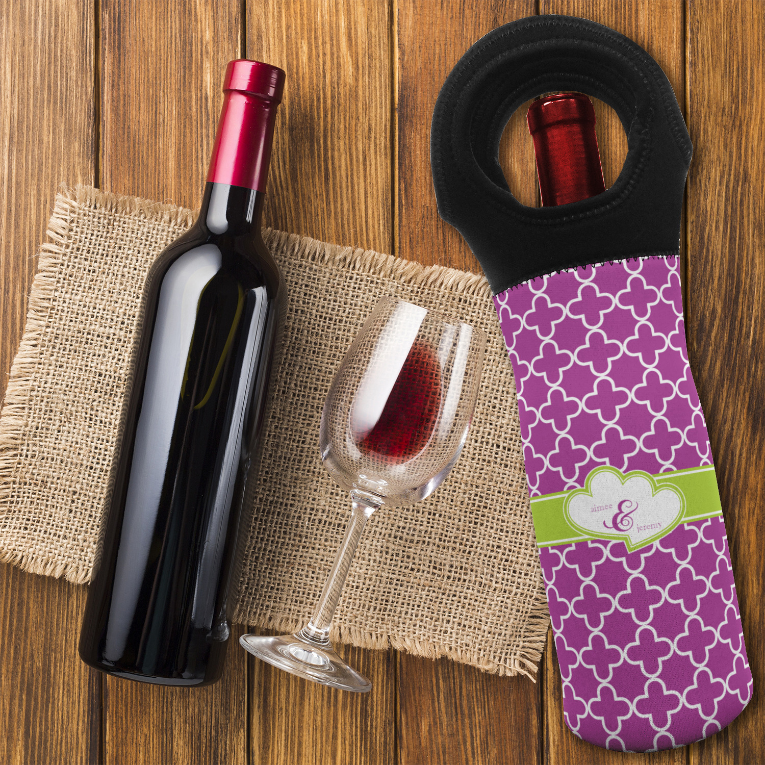 Make your grand entrance into any party with your personalized wine tote in tow. You can keep them for yourself or they make great hostess, wedding, or house warming gifts. With the design and personalization options available you can customize them to fit your style.