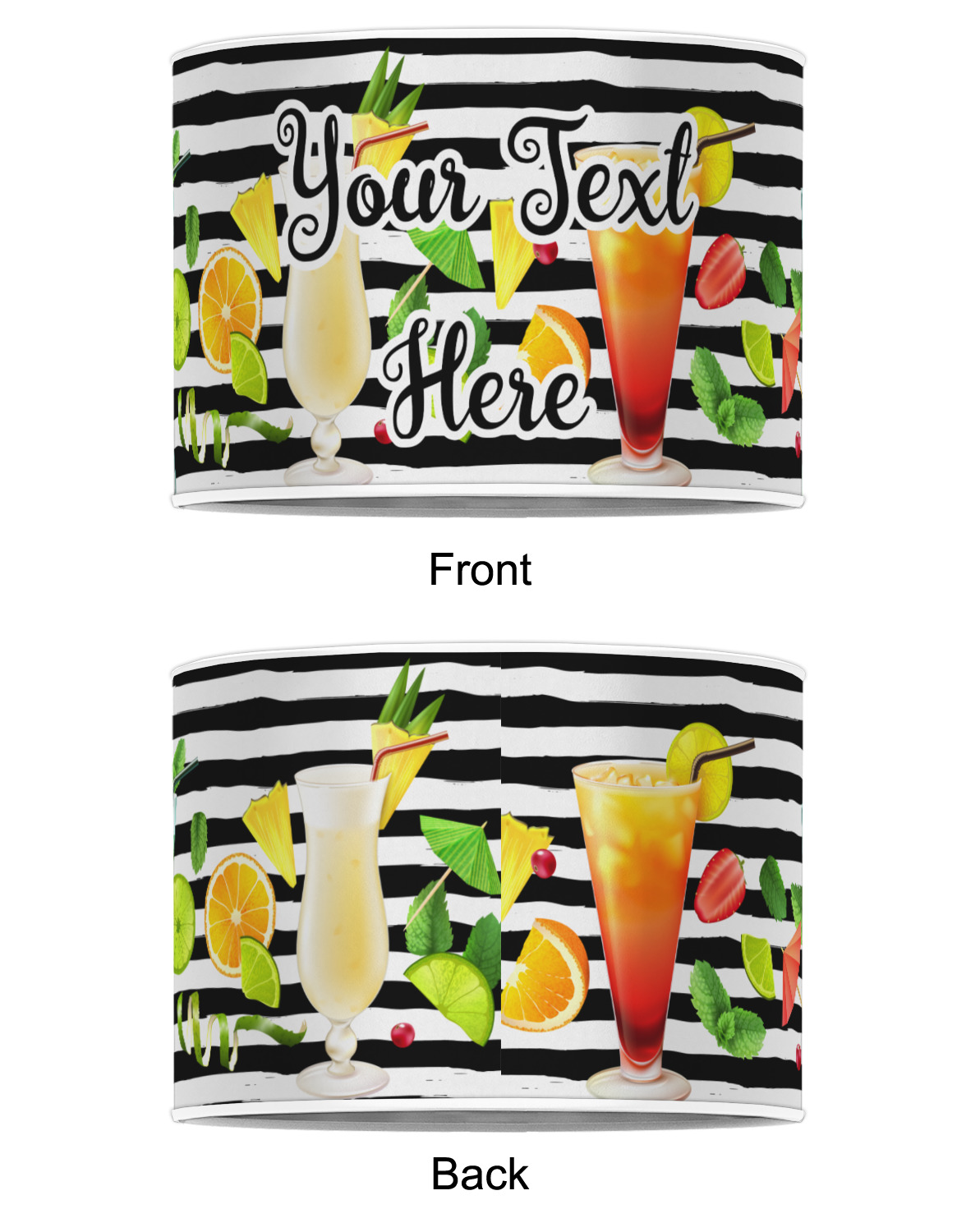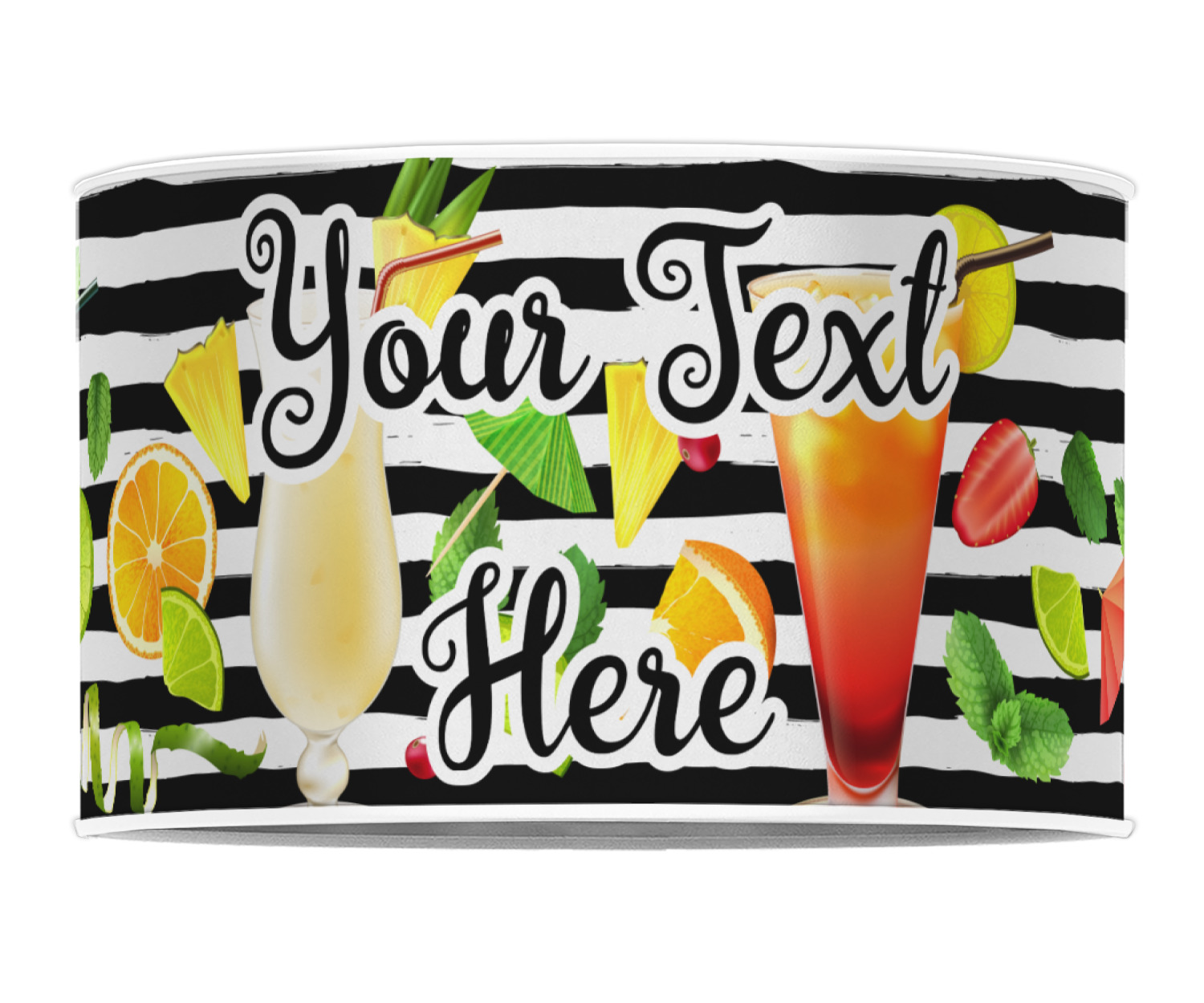 This design has gorgeous illustrations of several different kinds of mixed drinks from mojitos to margaritas. They're are a variety of colors like pink, orange, green, yellow, black, and white. Behind the cocktails is a fun striped pattern giving it a bit of pizazz. You are able to personalize the text with a name, monogram, or whatever you like.