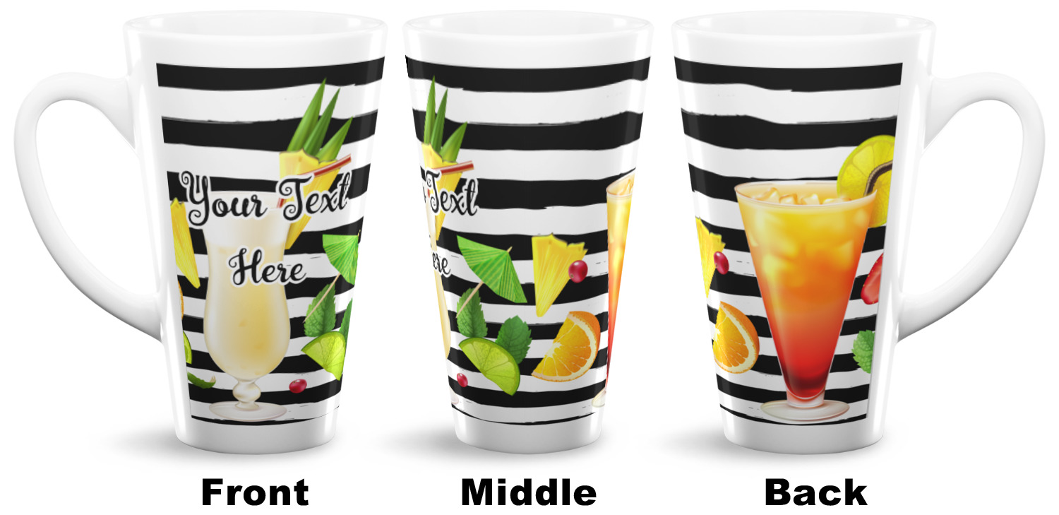 Sip and stay cozy with our custom latte mugs! Mugs are a simple gift for anyone, but make yours unique by personalizing our ceramic mugs for you and your close ones! Our tall latte mugs are great for an iced latte to start your day or the perfect size for some extra warm tea before bed! Use our smaller latte mugs to practice latte art! Browse our many designs, create your own, upload a photo or logo, and more with our online design studio!