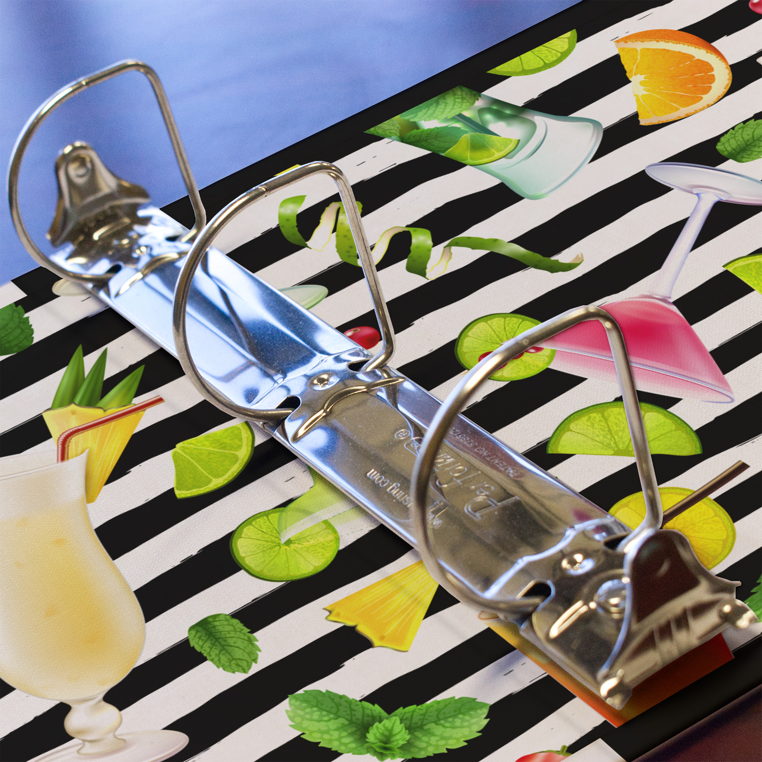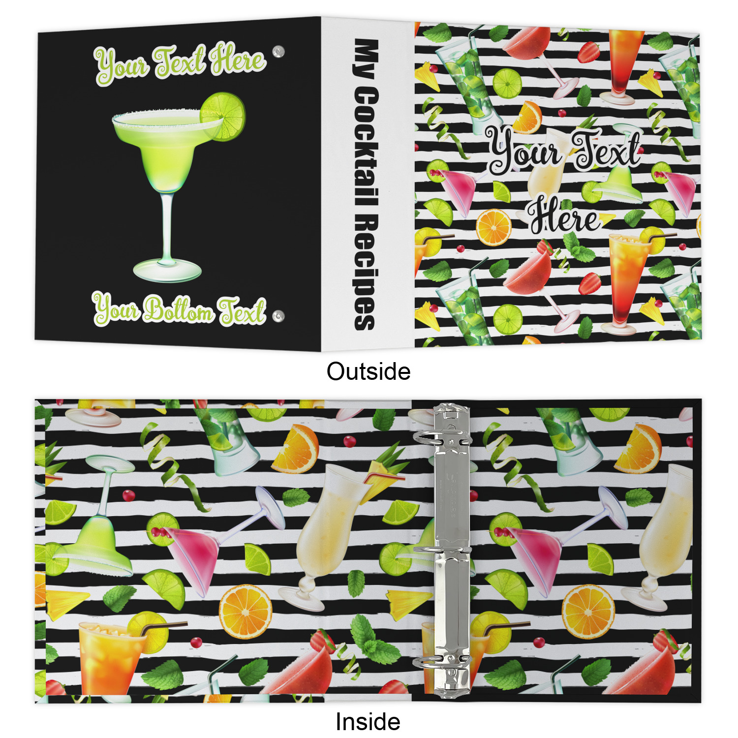 The outside is printed in 3 sections - front cover, spine and back cover - while the inside is printed in a full single print of your choice. The inside boasts a high quality nickel plated binder mechanism with a trigger opening function and is secured to the cardboard binder with posts and screws.