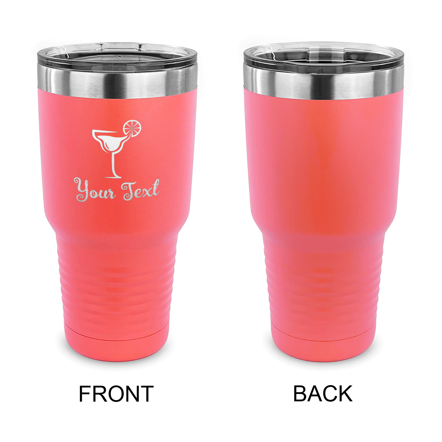 With the 5 colors - Black, Navy, Red, Pink and Coral, you are sure to find a cup to fit your personality. You can chose to engrave on the front or the front and back of the cup. Use our design studio to design your own cup and we laser engrave it for you.