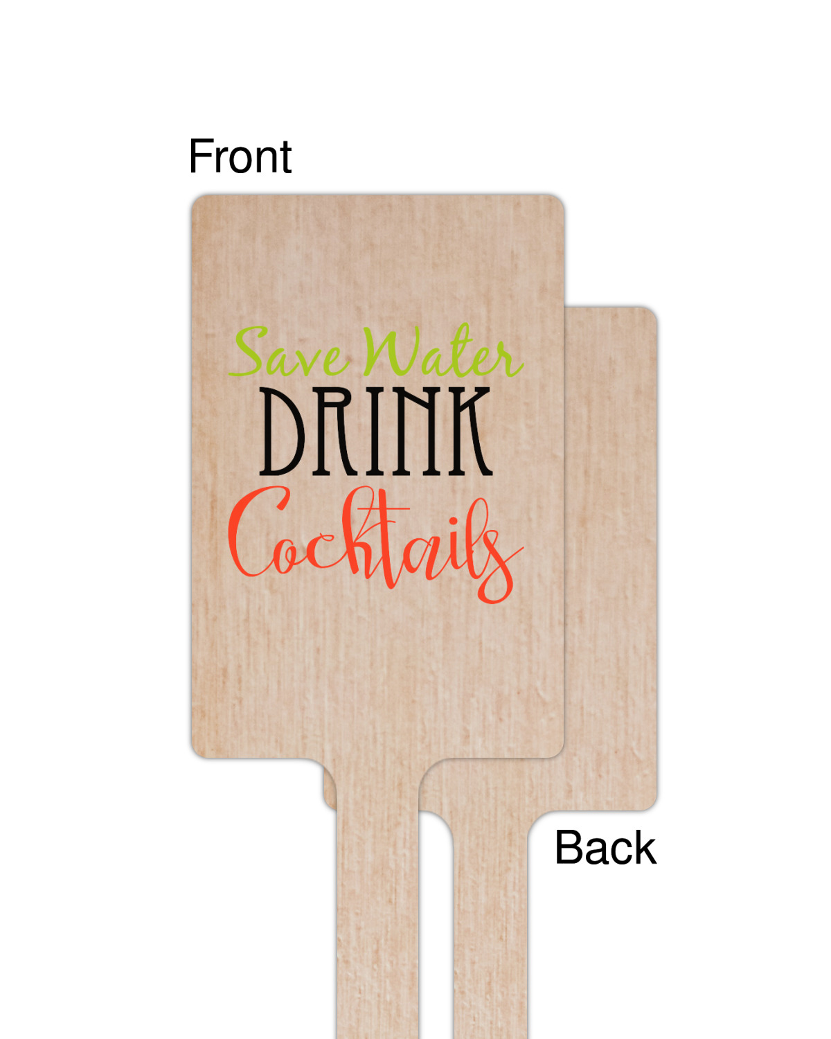 Rectangle Wooden Stir Stick - Printed Front & Back