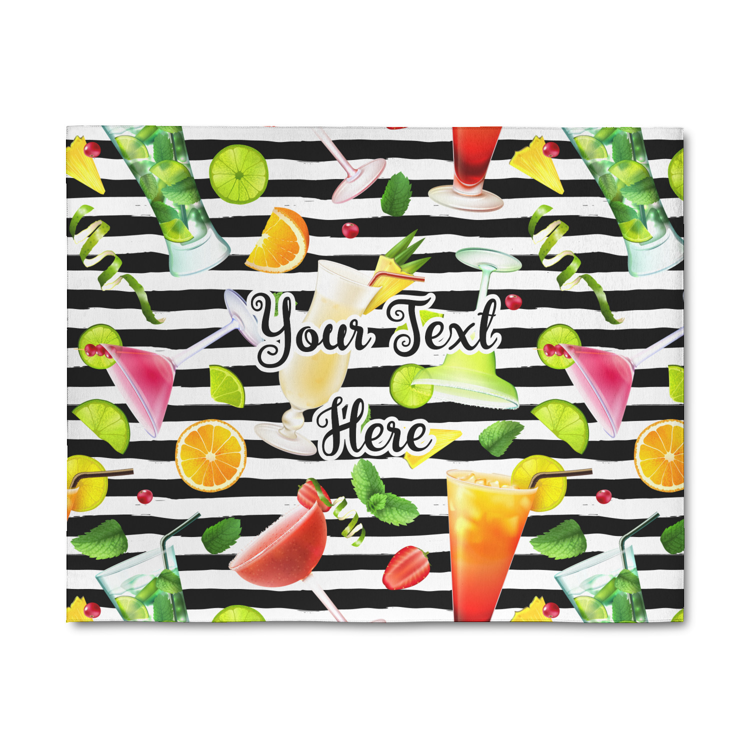 This design has gorgeous illustrations of several different kinds of mixed drinks from mojitos to margaritas. They're are a variety of colors like pink, orange, green, yellow, black, and white. Behind the cocktails is a fun striped pattern giving it a bit of pizazz. You are able to personalize the text with a name, monogram, or whatever you like.
