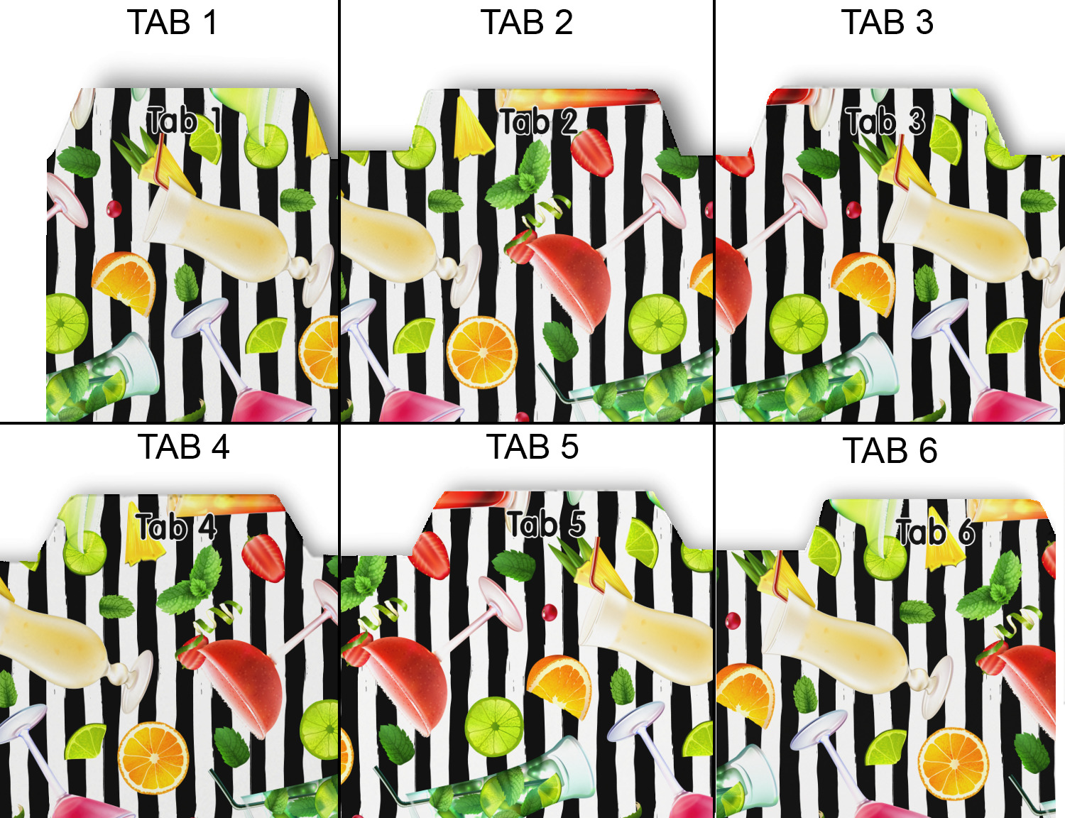 Whether you use binders at school or at work, we have designs to suit all of them. Available in 5 or 6 tab sets, you are sure to find a set to suit your needs. The back of each one is white and can be used to take notes, write vital information on, etc.