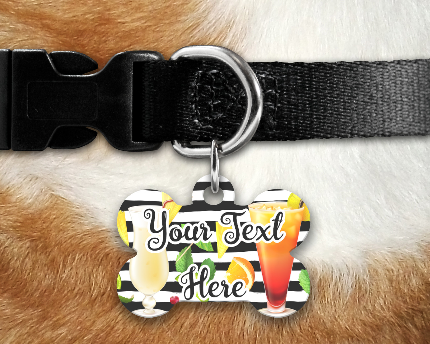 Our default design templates print your dog's personalization on the front and your contact information on the back; however everything is customizable, so you customize the patterns, the colors, the personalization, the contact information etc.