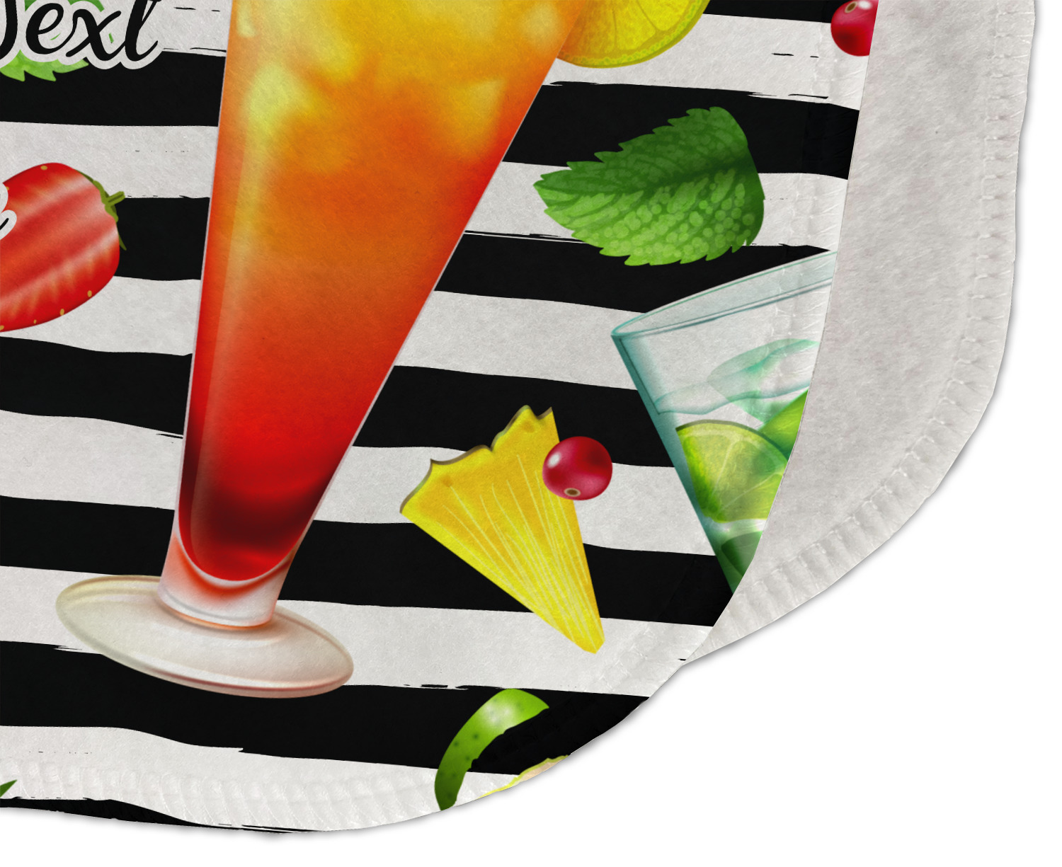This design has gorgeous illustrations of several different kinds of mixed drinks from mojitos to margaritas. They're are a variety of colors like pink, orange, green, yellow, black, and white. Behind the cocktails is a fun striped pattern giving it a bit of pizazz. You are able to personalize the text with a name, monogram, or whatever you like.