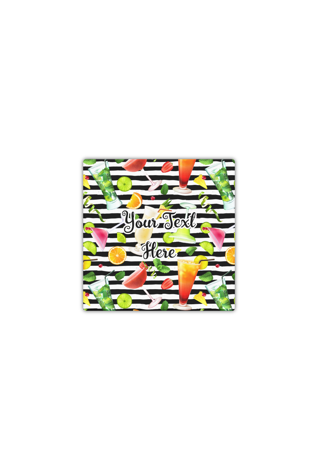 This design has gorgeous illustrations of several different kinds of mixed drinks from mojitos to margaritas. They're are a variety of colors like pink, orange, green, yellow, black, and white. Behind the cocktails is a fun striped pattern giving it a bit of pizazz. You are able to personalize the text with a name, monogram, or whatever you like.