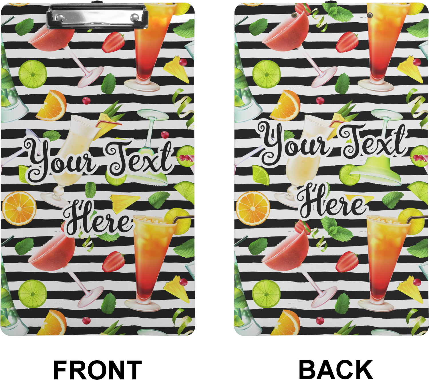 These custom clipboards are made from a strong hardboard and are coated with a glossy finish that accentuates the colors of your design. Alongside a retractable hook at its top, these decorative clipboards also feature sturdy clips to secure several sheets of paper. We sell these clipboards in two separate sizes. Our letter size measures at 12.5" L x 9" W, while our legal clipboard is approximately 15.5" L x 9" W. On both models, your personalization is printed on both sides of this clipboard and can be customized individually.