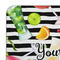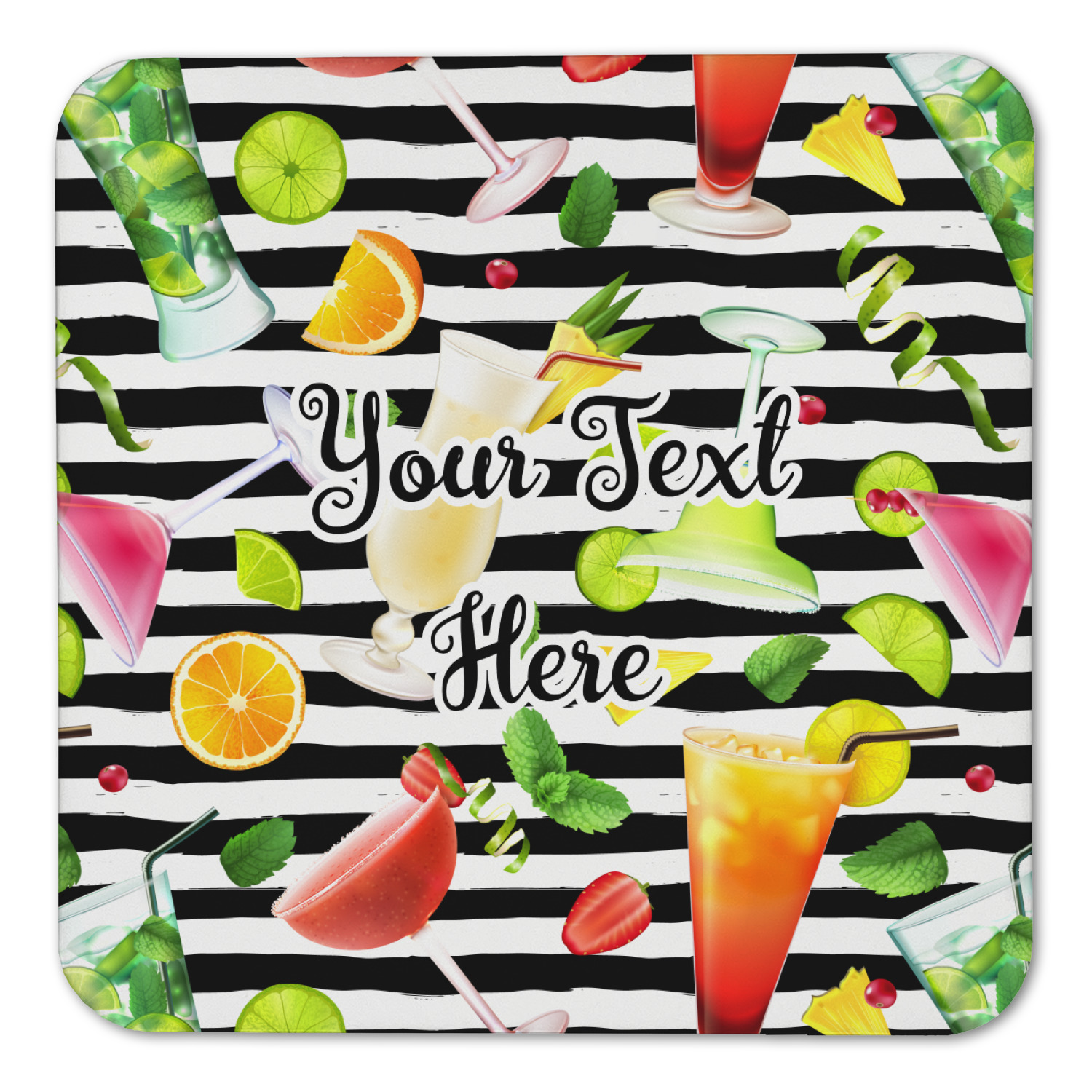 This design has gorgeous illustrations of several different kinds of mixed drinks from mojitos to margaritas. They're are a variety of colors like pink, orange, green, yellow, black, and white. Behind the cocktails is a fun striped pattern giving it a bit of pizazz. You are able to personalize the text with a name, monogram, or whatever you like.