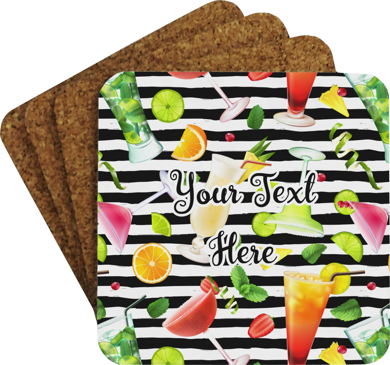 Your custom coasters have a smooth, laminated top and a cork bottom to prevent any unwanted slippage. We print your customized design atop this laminated surface, in bright and vibrant colors.