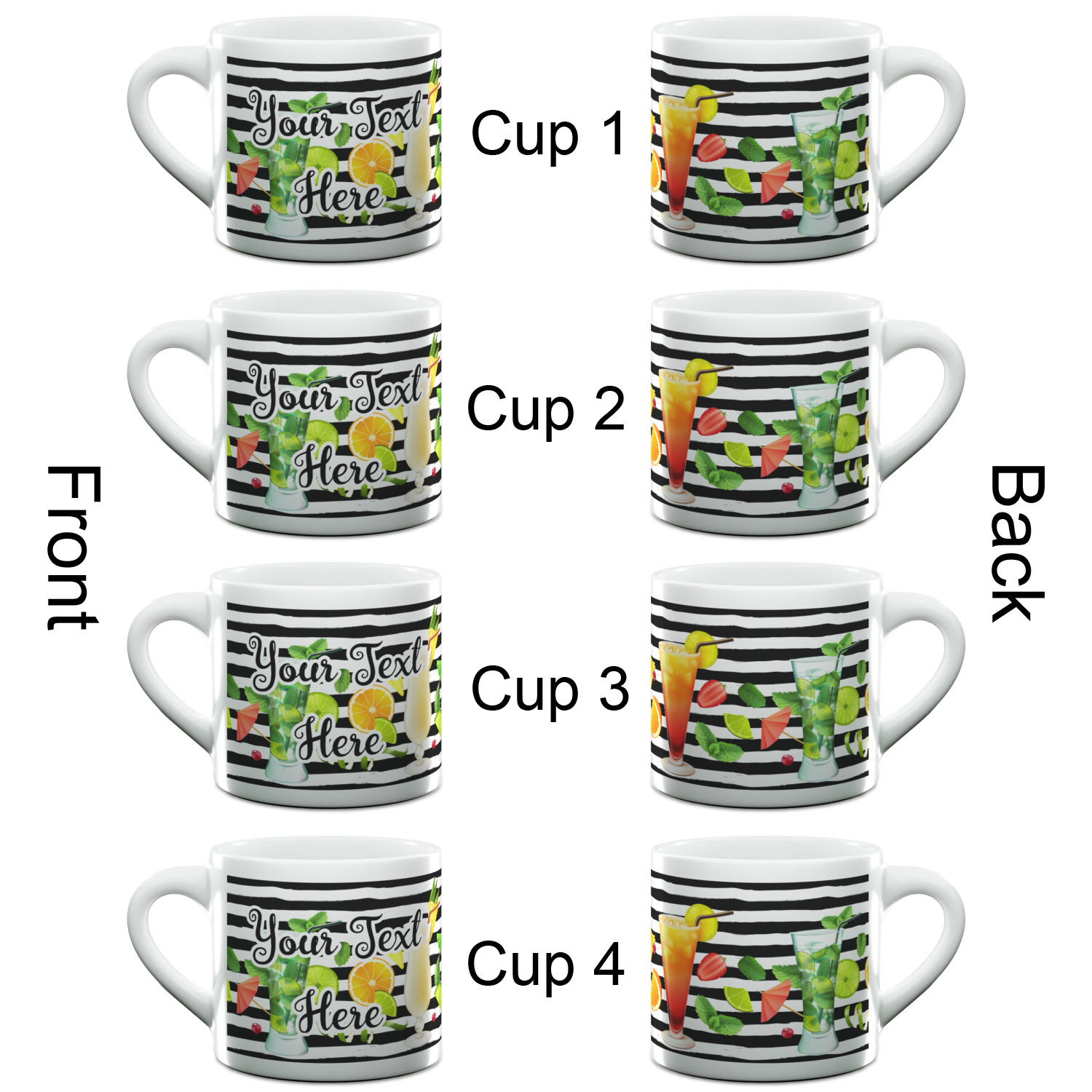 Pinkies out! Sip your favorite espresso with our personalized espresso cups! Our cute little espresso mugs are ideal for that morning shot of caffeine before you start your day! Make your mugs extra special by creating your own custom-designed espresso cup. Use our online design studio to customize designs, create your own, or upload a photo!