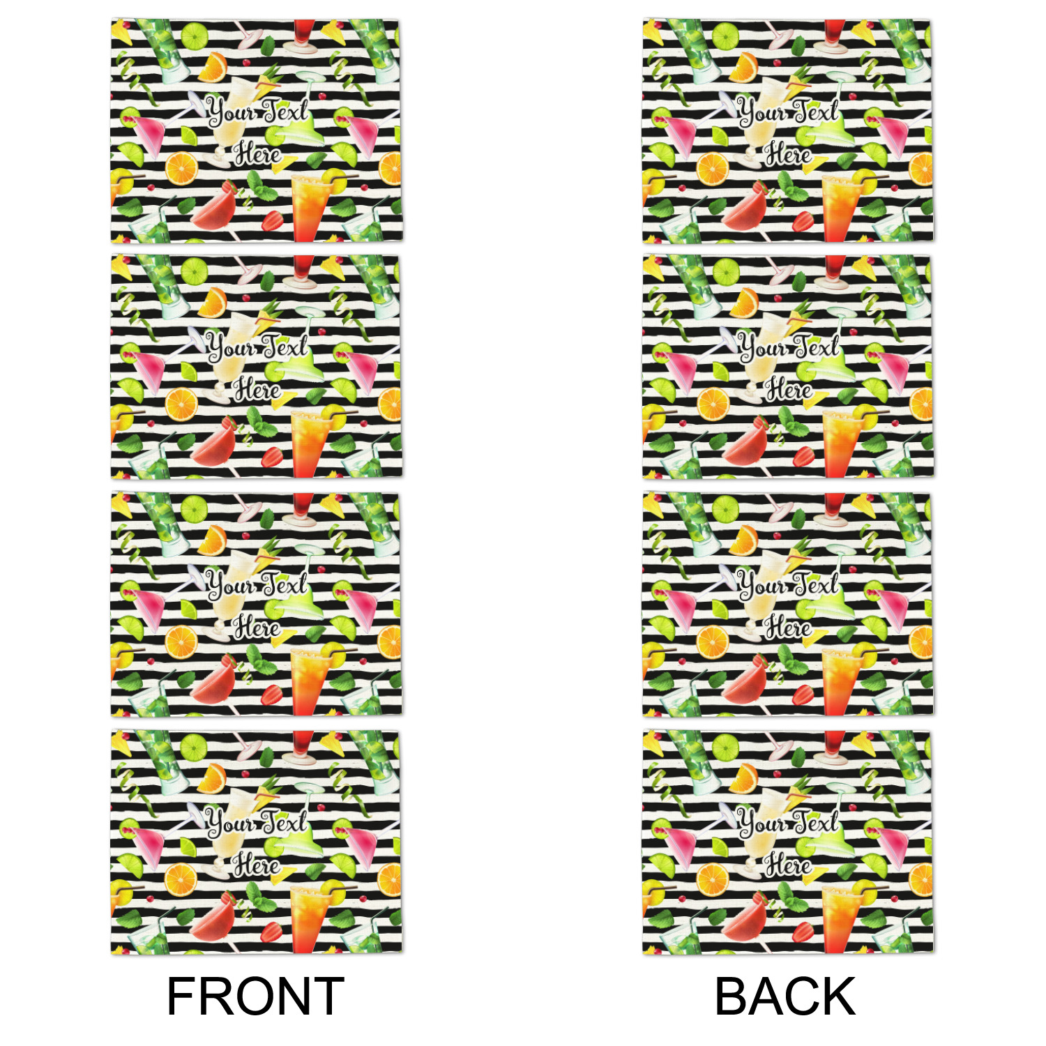 This design has gorgeous illustrations of several different kinds of mixed drinks from mojitos to margaritas. They're are a variety of colors like pink, orange, green, yellow, black, and white. Behind the cocktails is a fun striped pattern giving it a bit of pizazz. You are able to personalize the text with a name, monogram, or whatever you like.