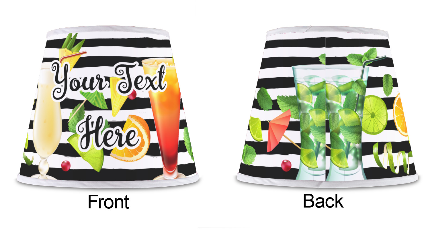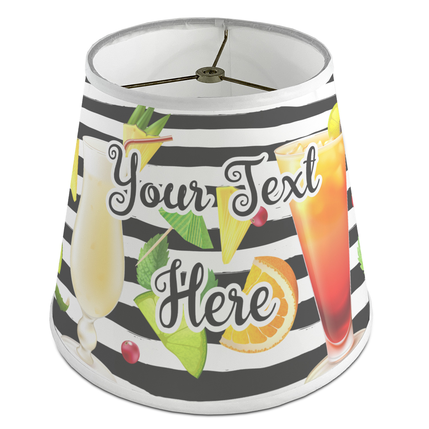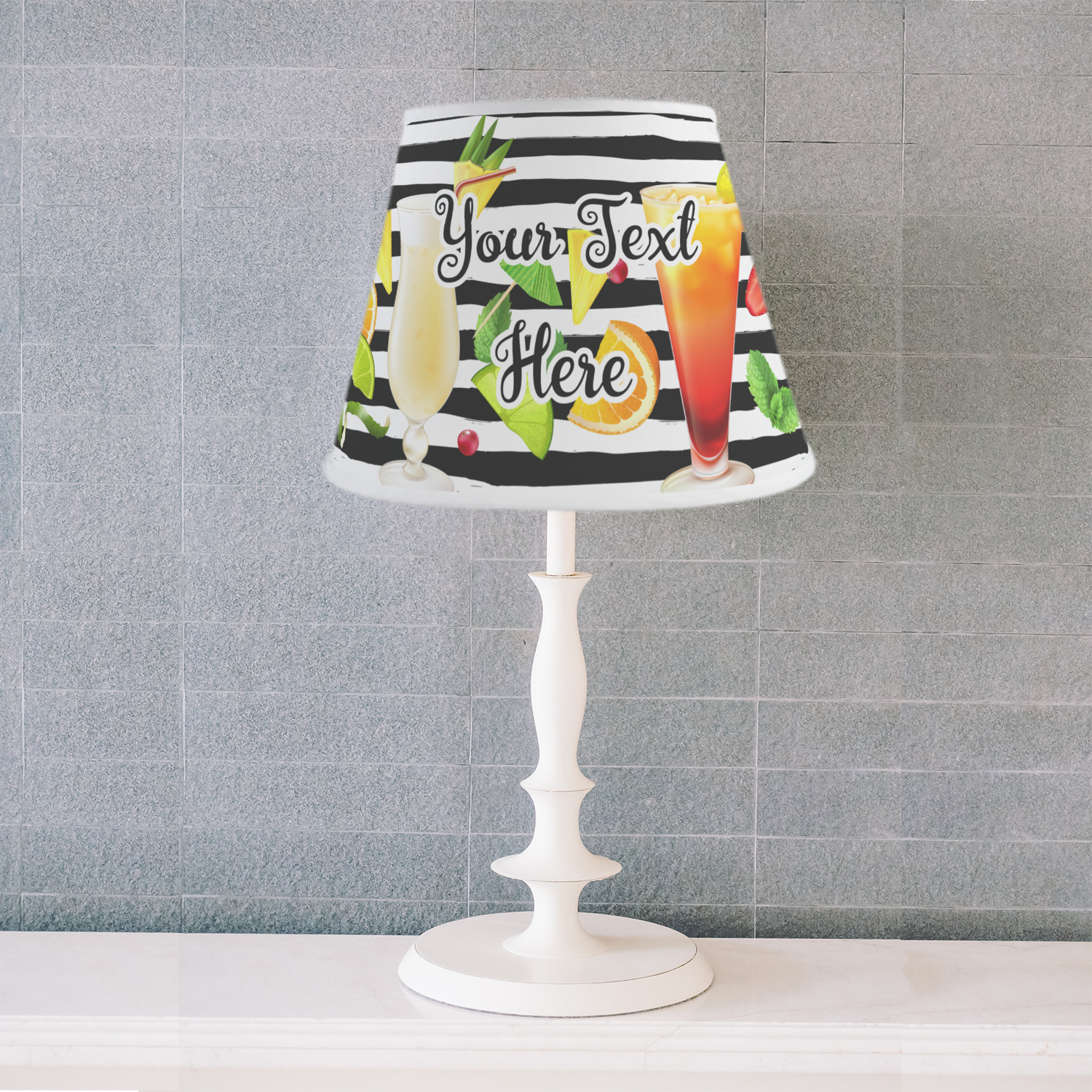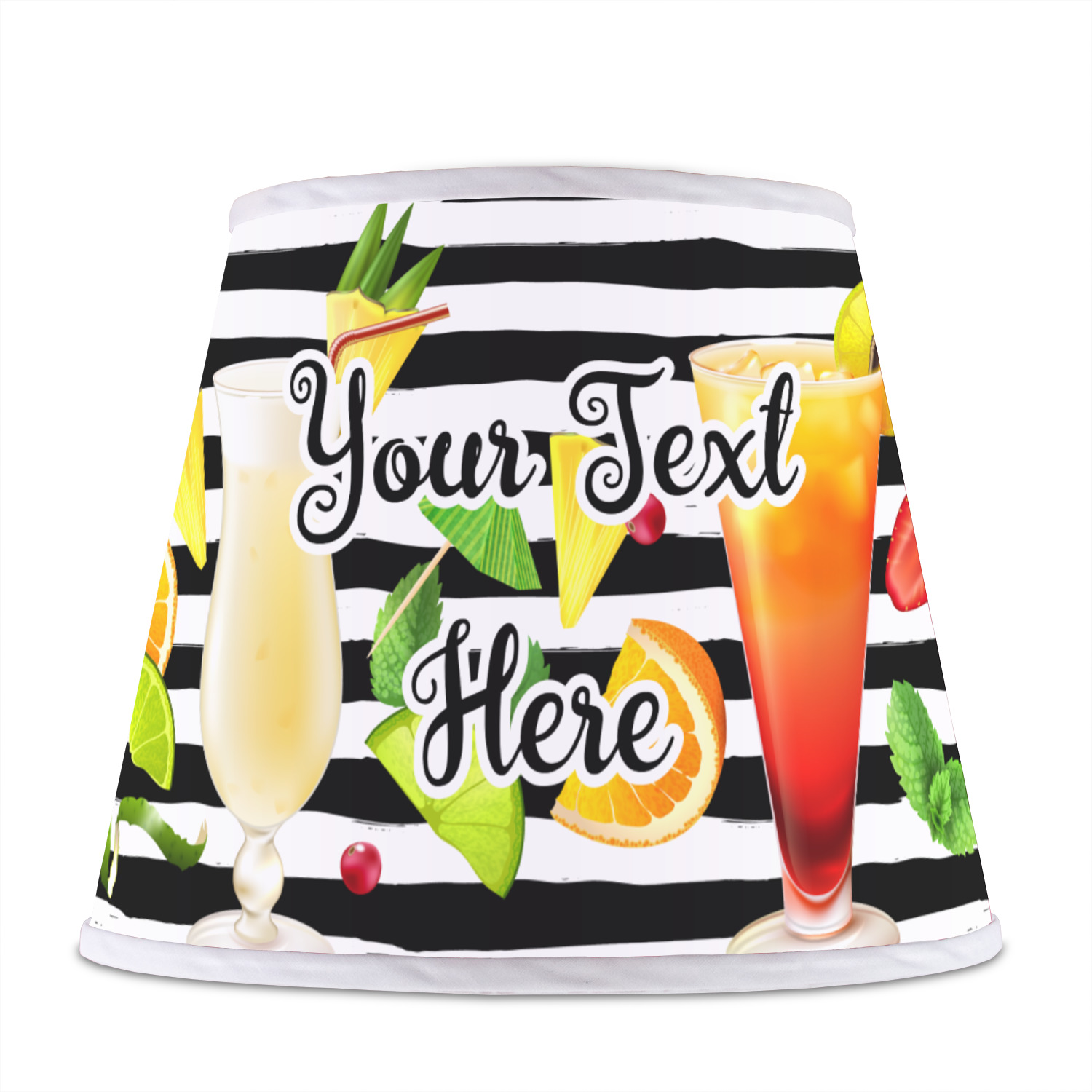The base of this lampshade is 12 inches in diameter, and the top spans 8 inches in diameter. The total height of the lampshade is 10 inches. The angled nature of this custom lampshade concentrates the light, making it ideal for smaller spaces. This lampshade is made of matte, polyfilm, and displays your customization in its middle. The top and bottom of this colorful lamp shade are lined with a white fabric ribbon (which can be replaced with black inside the design studio) which frames your design and creates a sophisticated finish. As an UNO fitter lampshade, this unique lamp shade will fit a variety of bases.