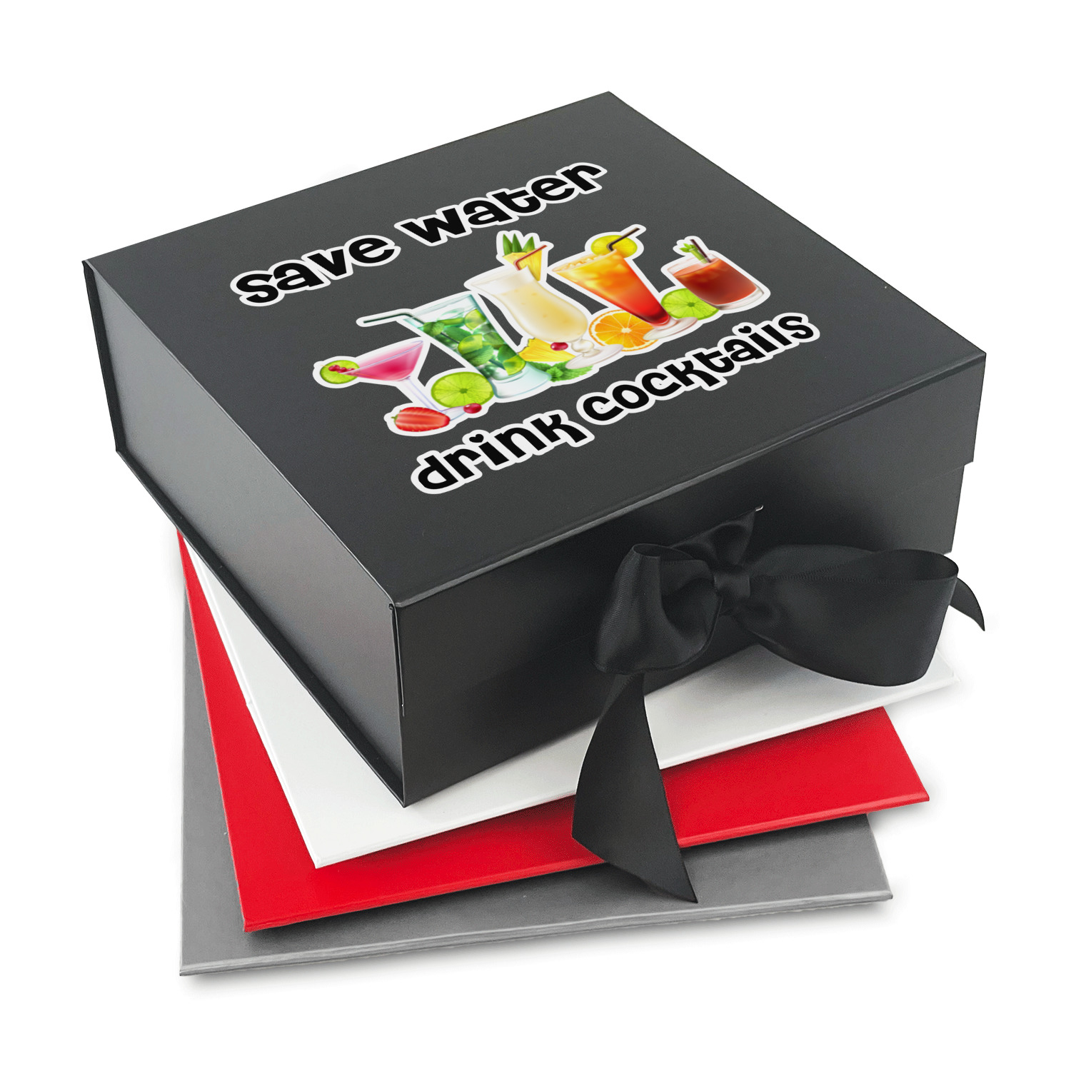Design your own using our design library and we will print your artwork onto the lid of the gift box. When the box is closed the ribbons can be tied to secure the lid and add to the elegant look of these gift boxes.