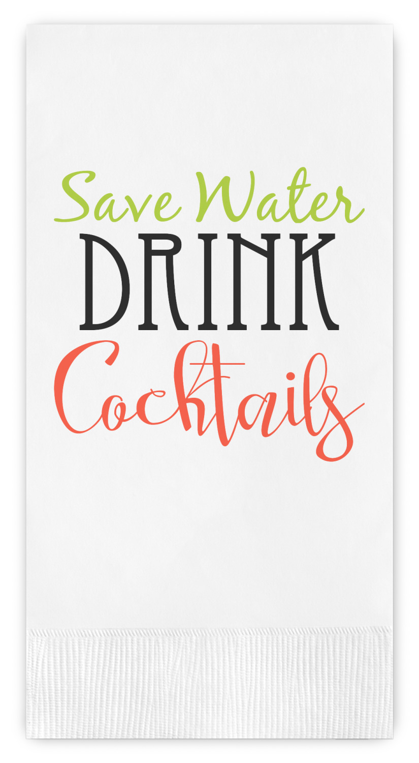 This design has gorgeous illustrations of several different kinds of mixed drinks from mojitos to margaritas. They're are a variety of colors like pink, orange, green, yellow, black, and white. Behind the cocktails is a fun striped pattern giving it a bit of pizazz. You are able to personalize the text with a name, monogram, or whatever you like.