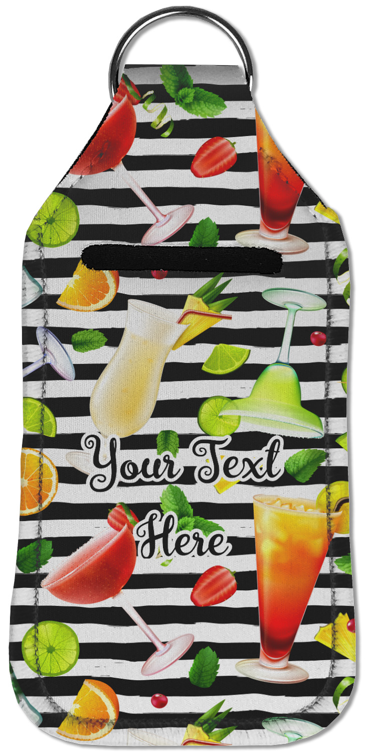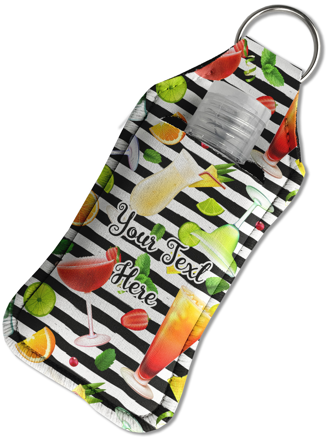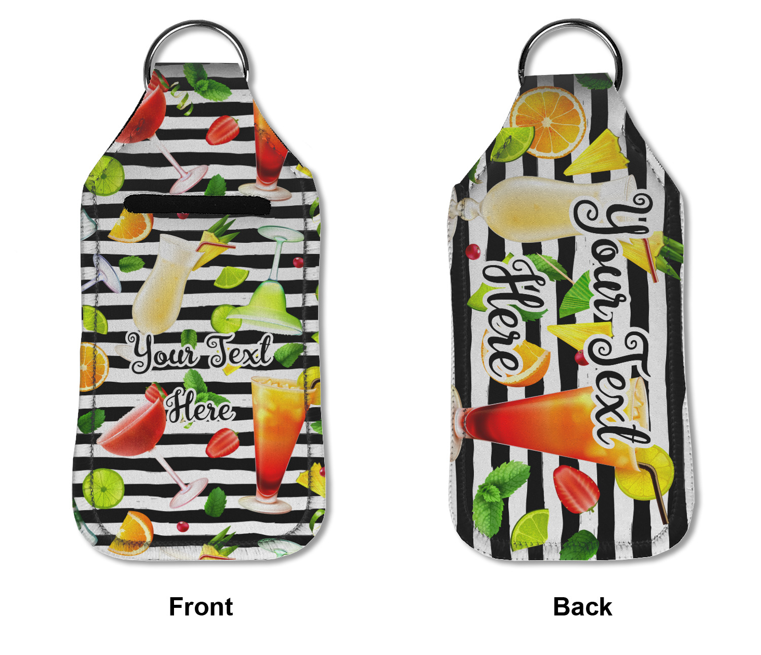 Each hand sanitizer holder comes with its own empty travel-sized, refillable hand sanitizer sure to fit snug in your customized sanitizer case! Our hand sanitizer cases are a durable, yet soft neoprene material sure to last any daily activities or travel agenda. Customize and personalize a hand sanitizer bottle holder with one of our two sizes - small (4.25" x 2.25") or large (5.5" x 2.5"). Each travel sanitizer holder comes with a keyring for attachment on bags, keys, or more!
