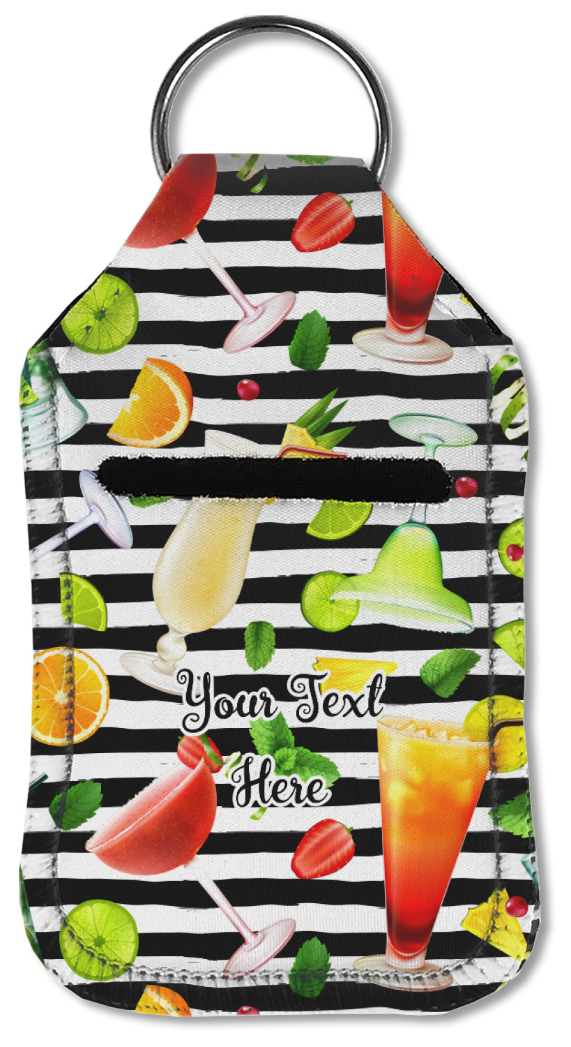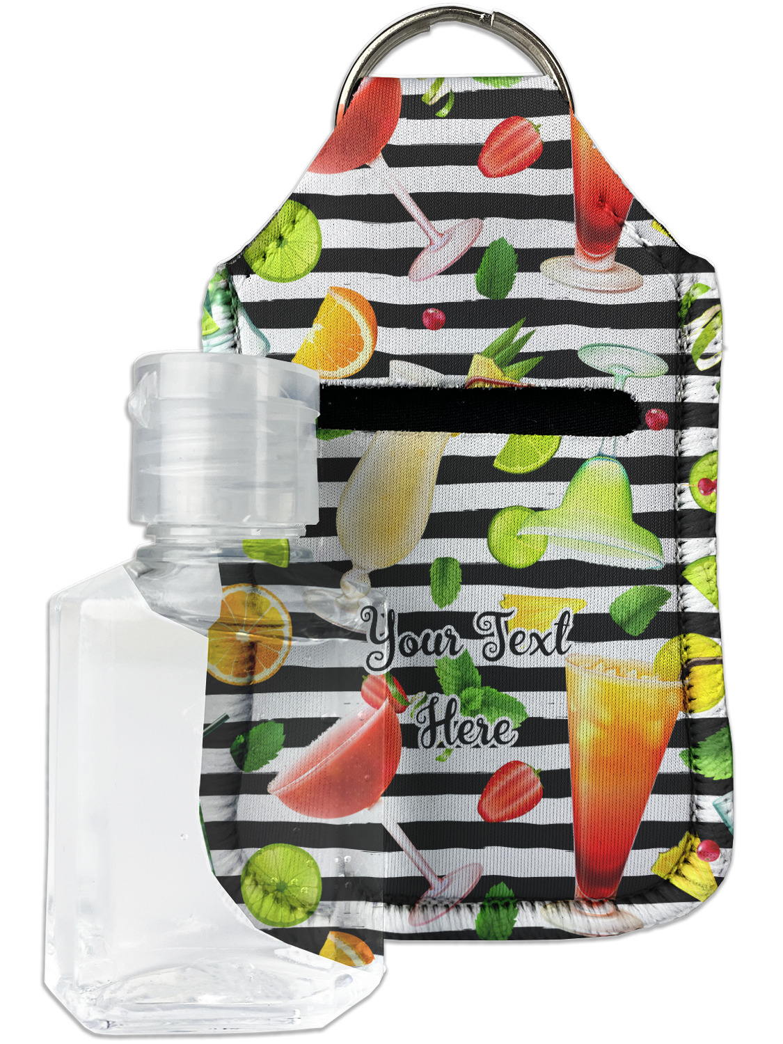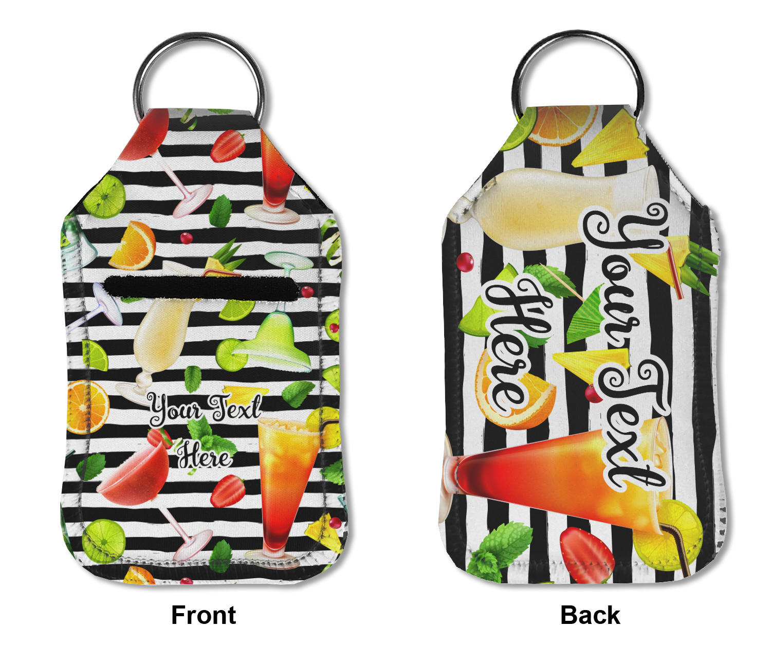 Each hand sanitizer holder comes with its own empty travel-sized, refillable hand sanitizer sure to fit snug in your customized sanitizer case! Our hand sanitizer cases are a durable, yet soft neoprene material sure to last any daily activities or travel agenda. Customize and personalize a hand sanitizer bottle holder with one of our two sizes - small (4.25" x 2.25") or large (5.5" x 2.5"). Each travel sanitizer holder comes with a keyring for attachment on bags, keys, or more!