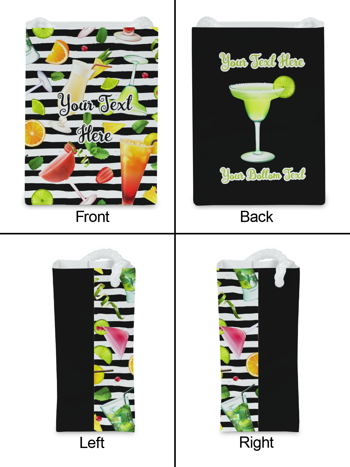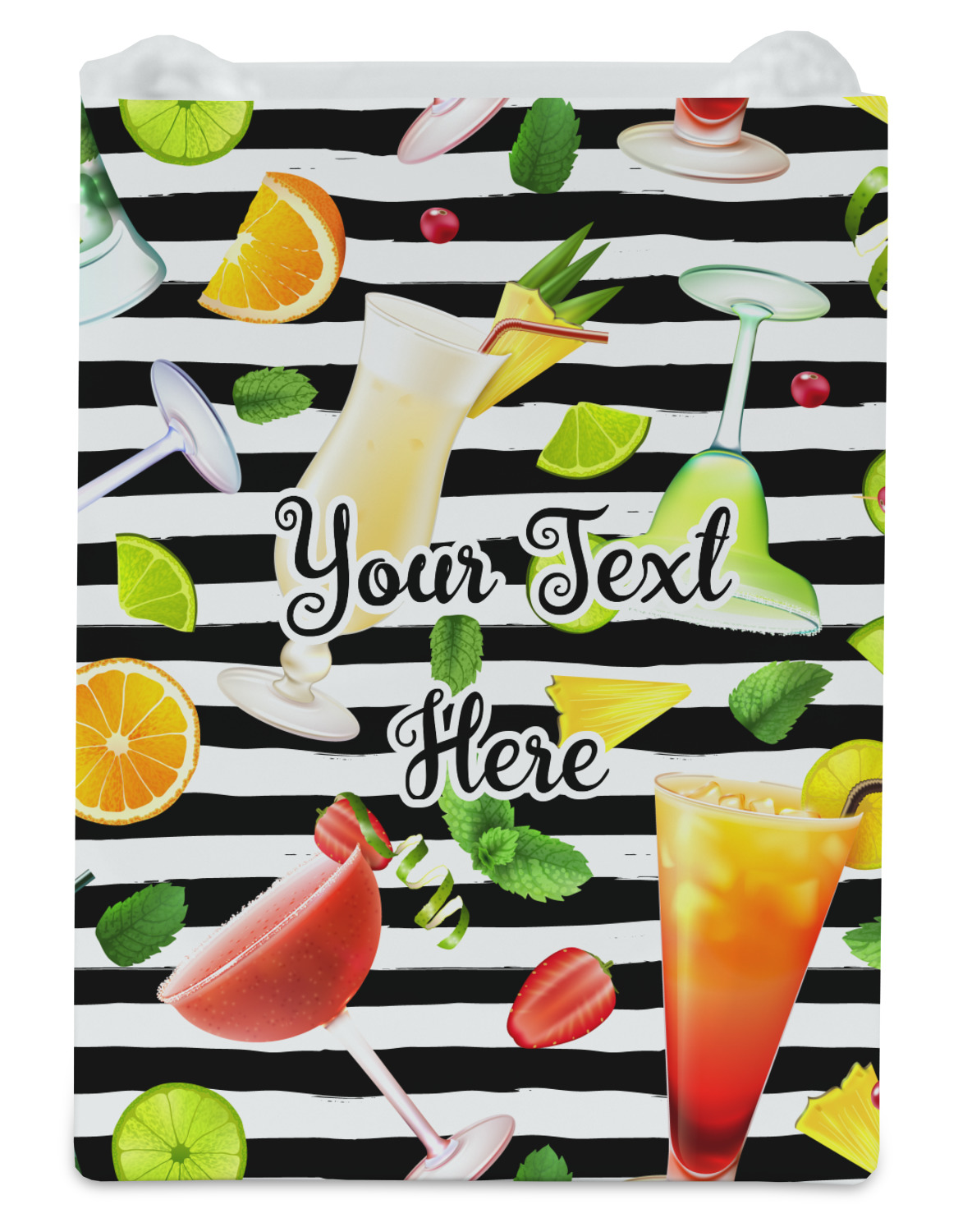 This design has gorgeous illustrations of several different kinds of mixed drinks from mojitos to margaritas. They're are a variety of colors like pink, orange, green, yellow, black, and white. Behind the cocktails is a fun striped pattern giving it a bit of pizazz. You are able to personalize the text with a name, monogram, or whatever you like.