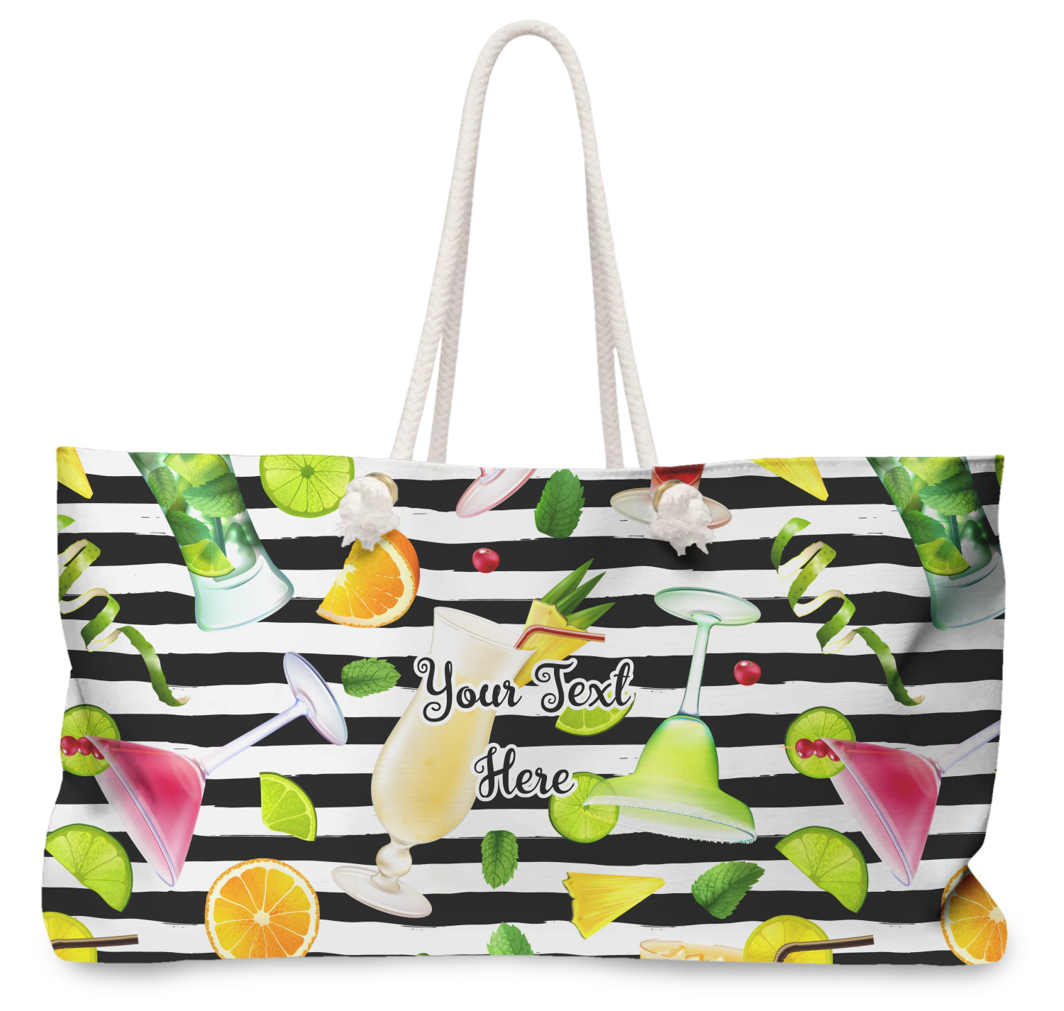 Our oversized weekender tote with rope handles is perfect for your weekend at the beach or on the town. This large tote are 24" W X 13" H, with a 5" gusset and a 27" thick rope handles with a knot that is put through a grommeted brass hole.
