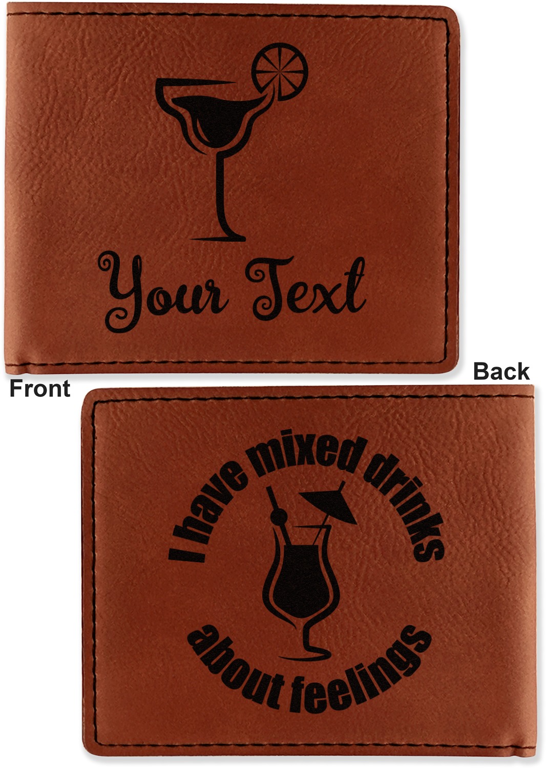 Your bifold wallet will be personalized by laser engraving, which will be a black color on the wallet. Choose a graphic, text, or monogram to personalize your wallet. There are thousands of choices in our design center.