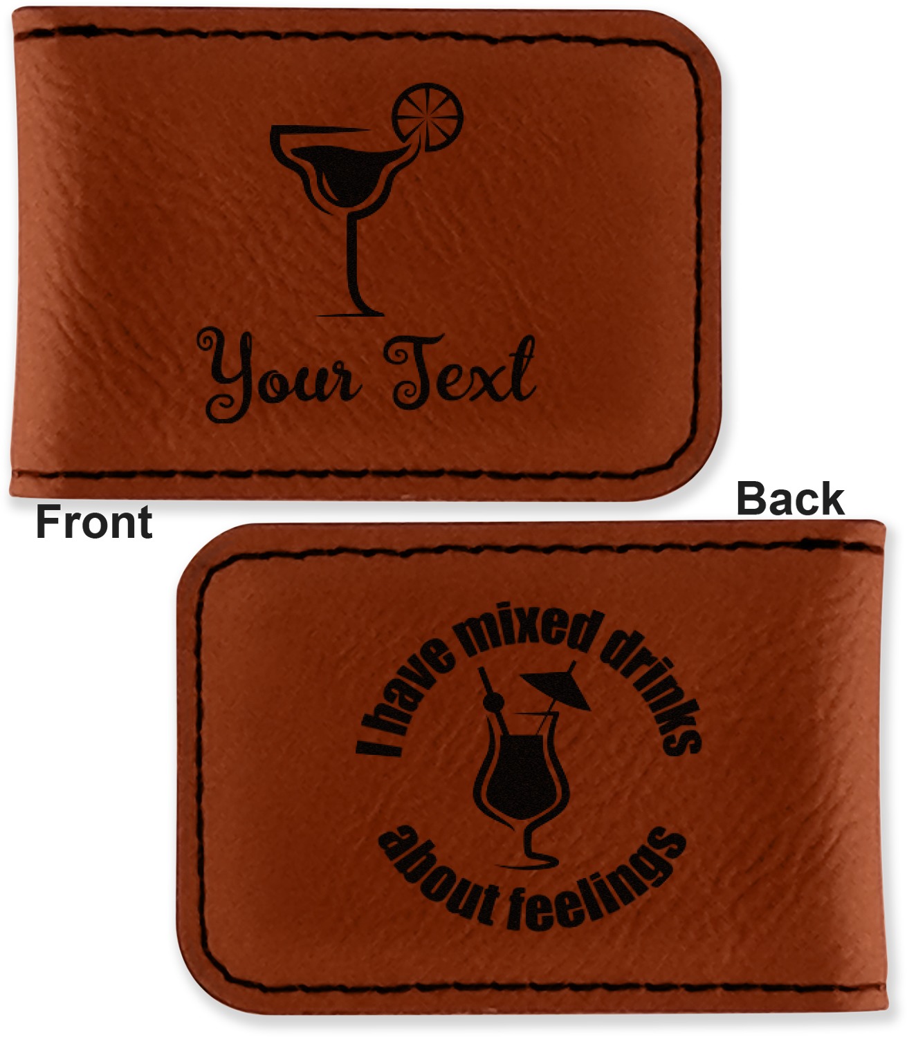 Your money clip will be laser engraved so that the design you choose will come out black. Find a fun graphic, monogram, or font to use to personalize your money clip either on just the front or the front and the back.