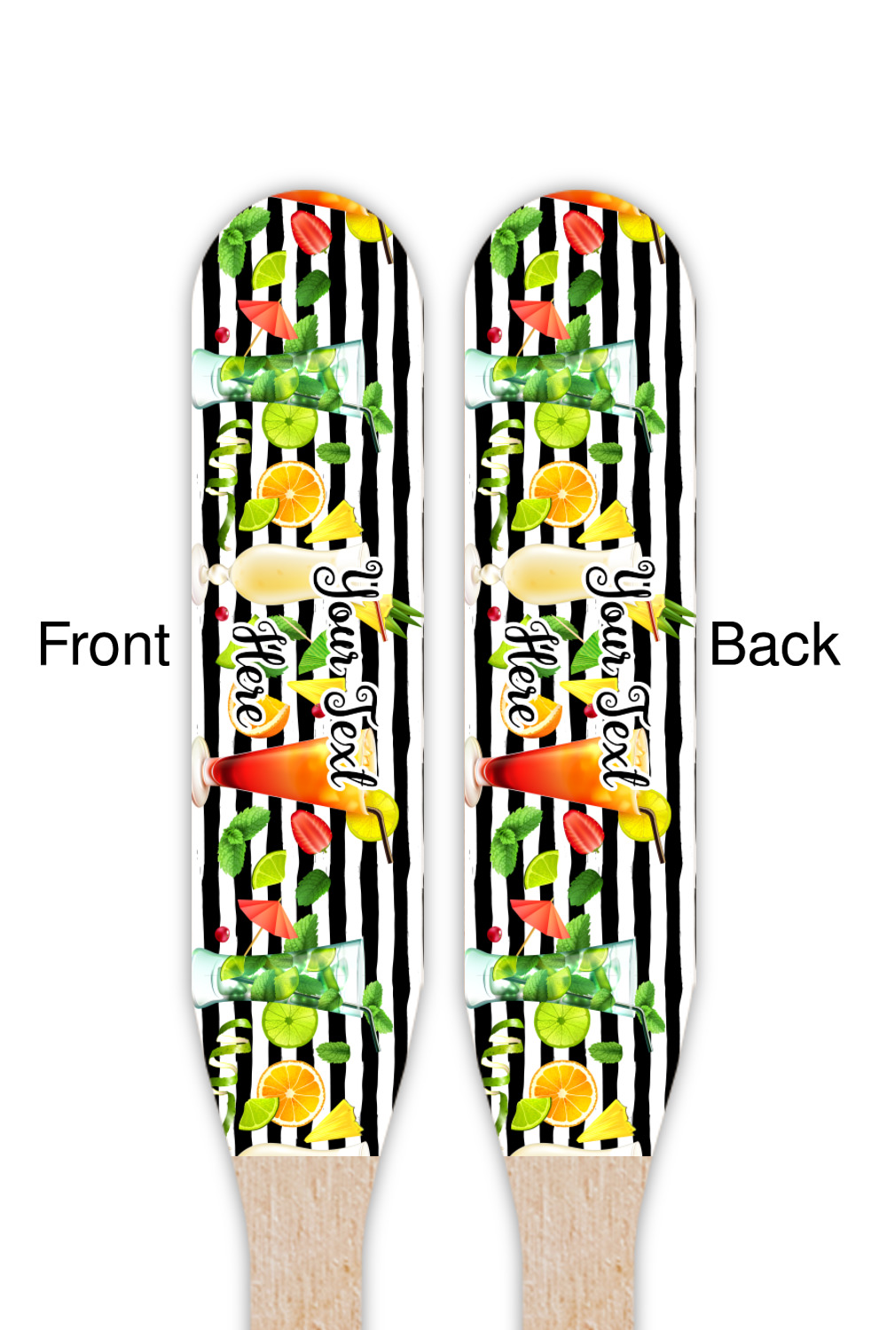 Our paddle style food & drink picks are available in 2 print styles - single sided and double sided.