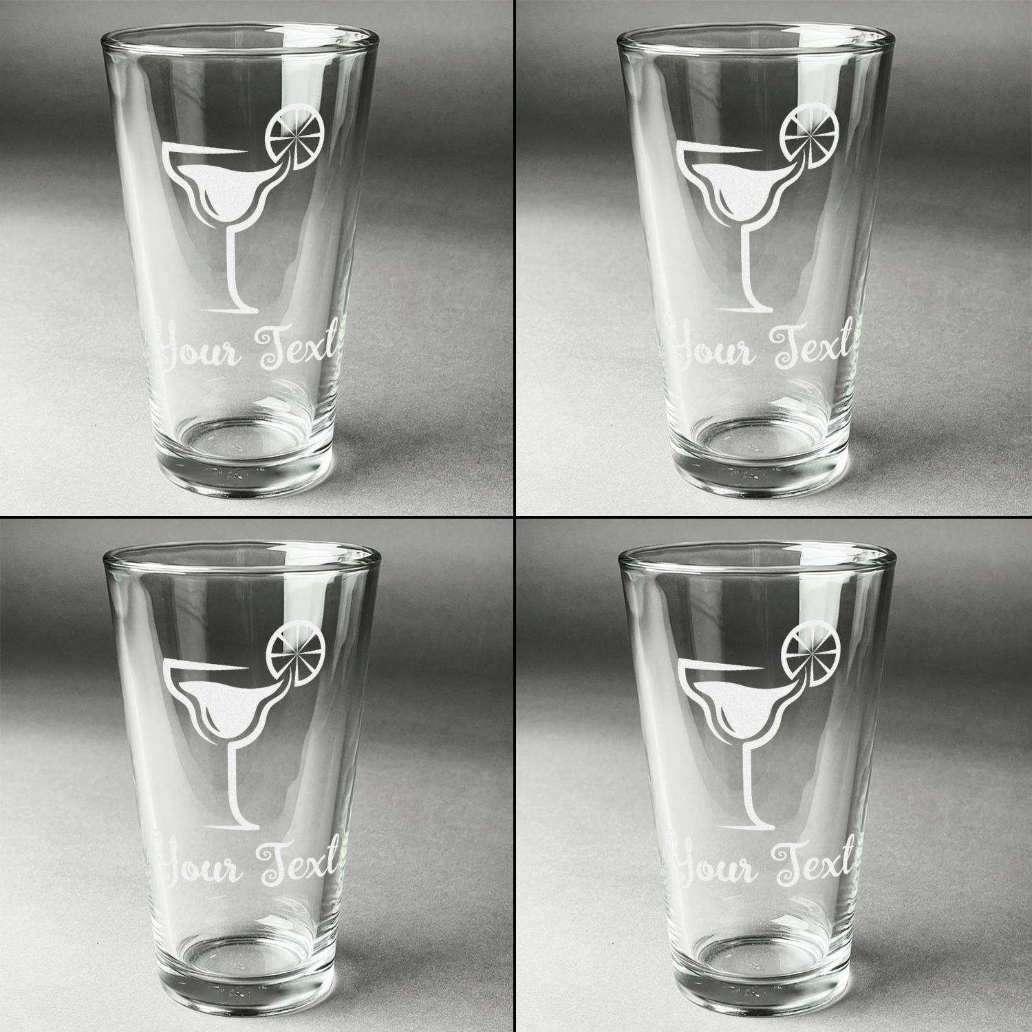 Available in a single glass or a set of 4 - each glass will be custom engraved with your design. Each glass holds 16 oz and measure 5.75"H x 3.5"W.