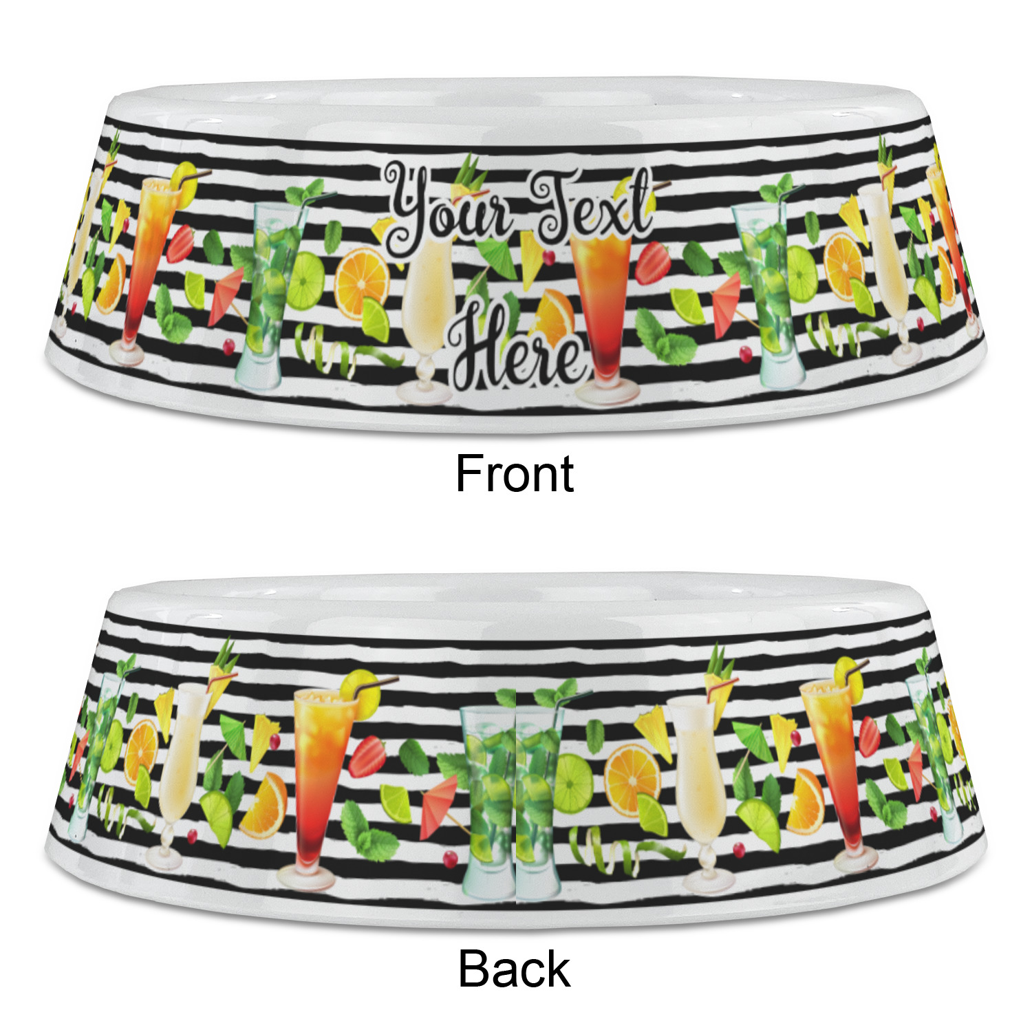 This design has gorgeous illustrations of several different kinds of mixed drinks from mojitos to margaritas. They're are a variety of colors like pink, orange, green, yellow, black, and white. Behind the cocktails is a fun striped pattern giving it a bit of pizazz. You are able to personalize the text with a name, monogram, or whatever you like.