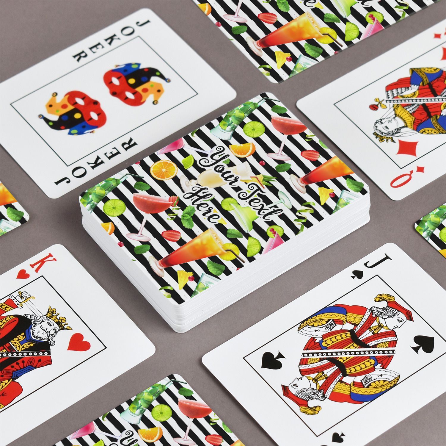 Our playing cards are perfect for family game nights or poker nights. A deck of customized playing cards ups the level of fun & entertainment to your game or poker nights. Imagine playing cards customized to match the theme of your game room, or game night, or that special event, or occasion with gambling tables!