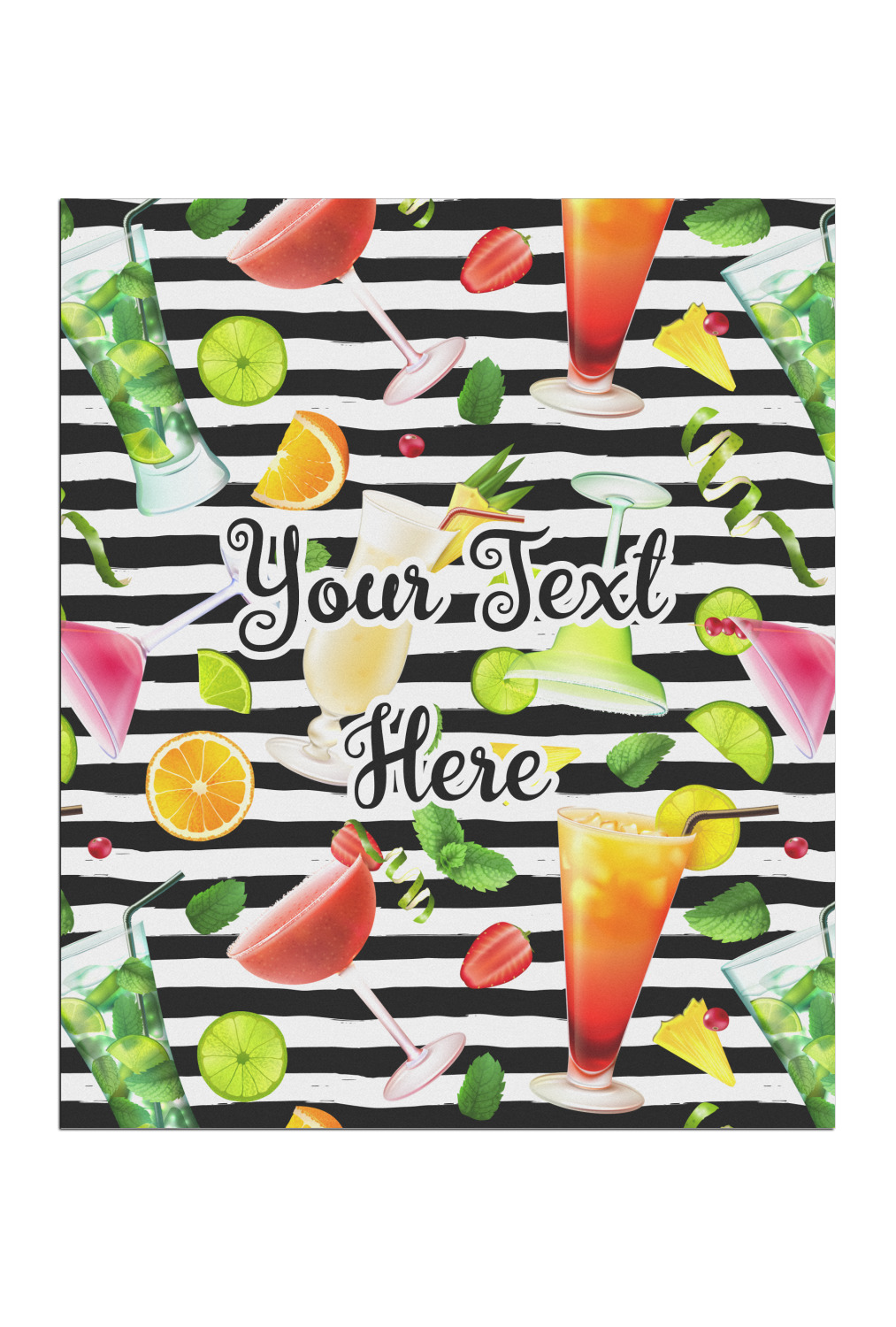 This design has gorgeous illustrations of several different kinds of mixed drinks from mojitos to margaritas. They're are a variety of colors like pink, orange, green, yellow, black, and white. Behind the cocktails is a fun striped pattern giving it a bit of pizazz. You are able to personalize the text with a name, monogram, or whatever you like.