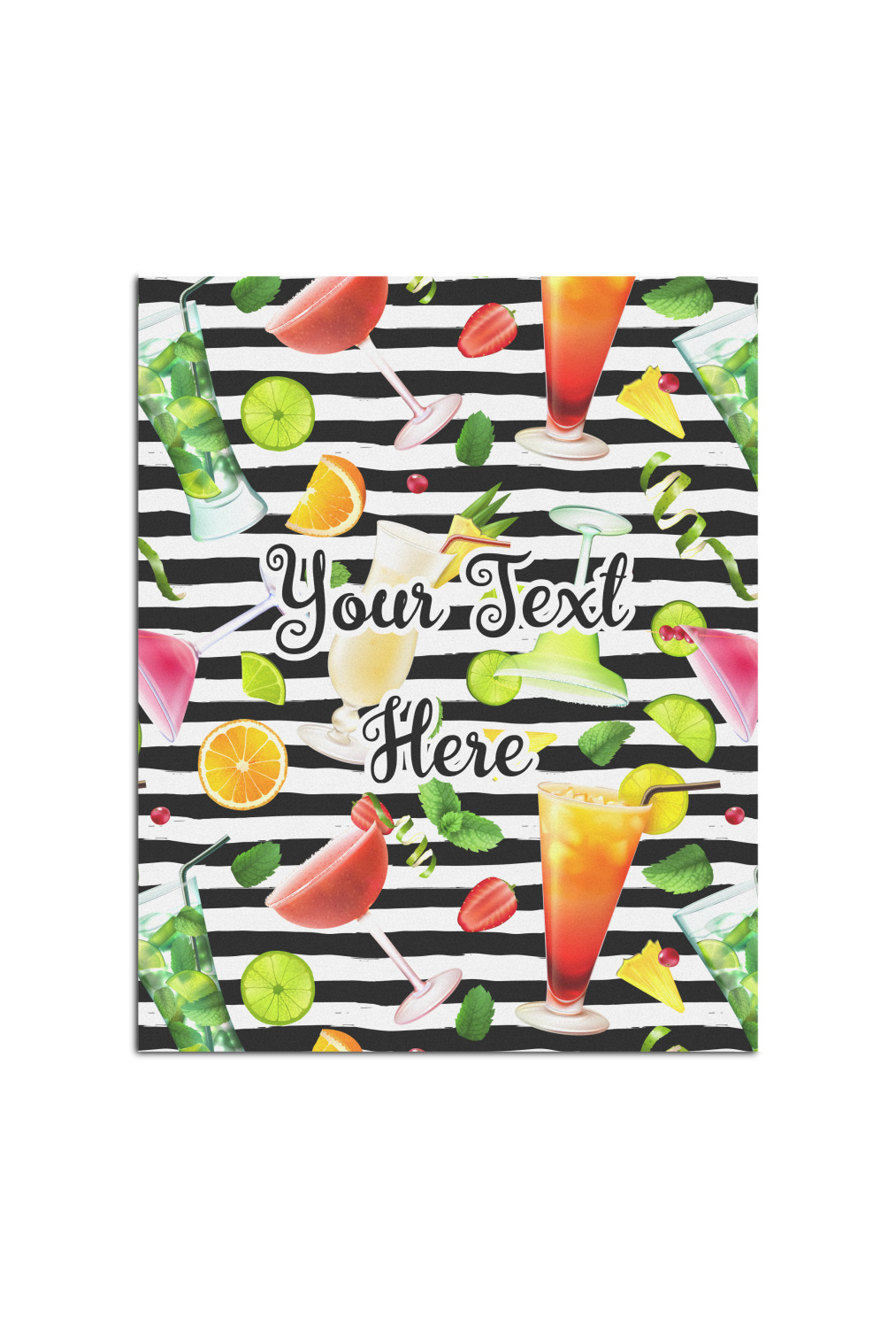 This design has gorgeous illustrations of several different kinds of mixed drinks from mojitos to margaritas. They're are a variety of colors like pink, orange, green, yellow, black, and white. Behind the cocktails is a fun striped pattern giving it a bit of pizazz. You are able to personalize the text with a name, monogram, or whatever you like.