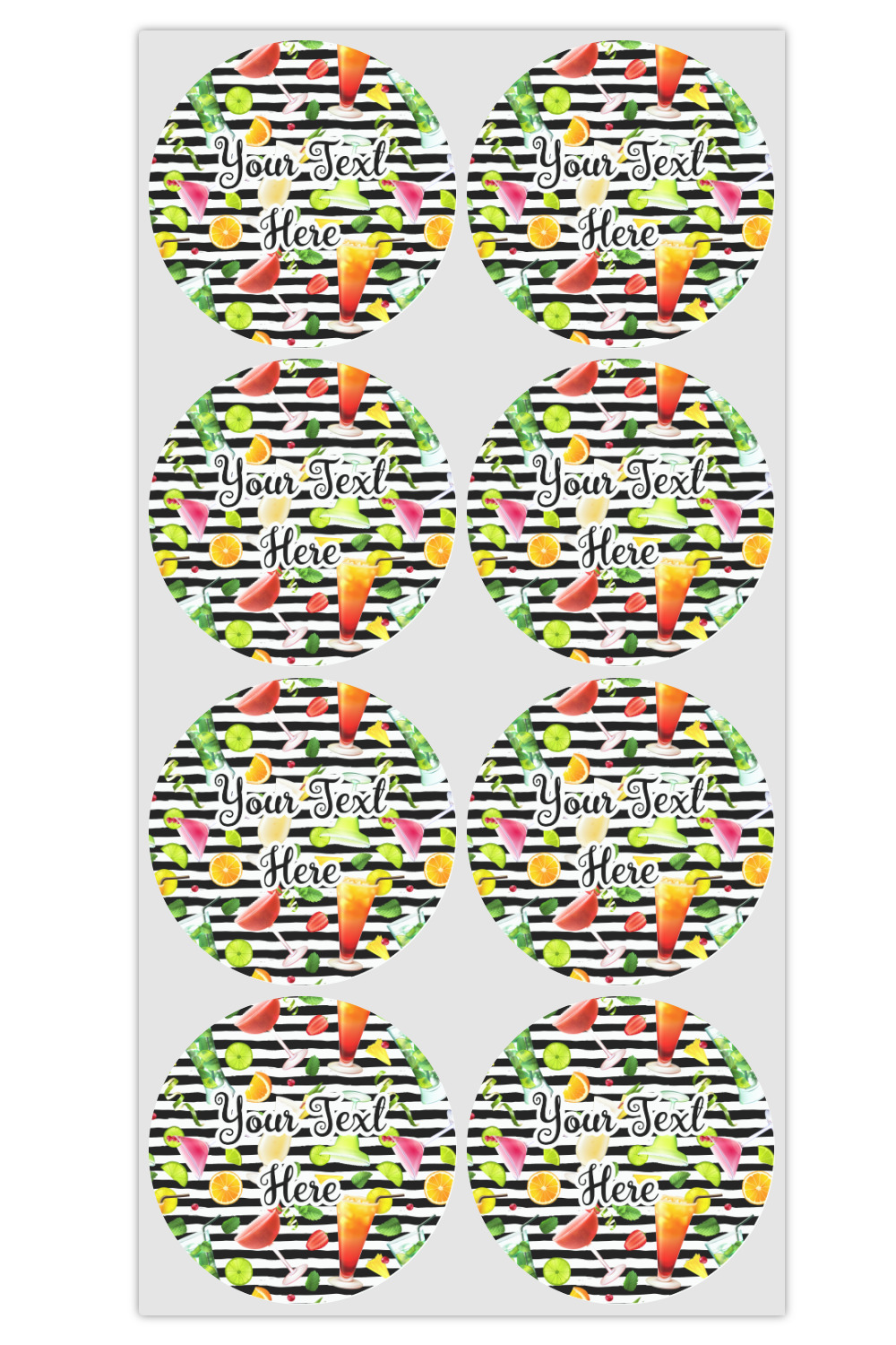 This design has gorgeous illustrations of several different kinds of mixed drinks from mojitos to margaritas. They're are a variety of colors like pink, orange, green, yellow, black, and white. Behind the cocktails is a fun striped pattern giving it a bit of pizazz. You are able to personalize the text with a name, monogram, or whatever you like.