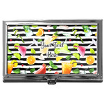 This design has gorgeous illustrations of several different kinds of mixed drinks from mojitos to margaritas. They're are a variety of colors like pink, orange, green, yellow, black, and white. Behind the cocktails is a fun striped pattern giving it a bit of pizazz. You are able to personalize the text with a name, monogram, or whatever you like.