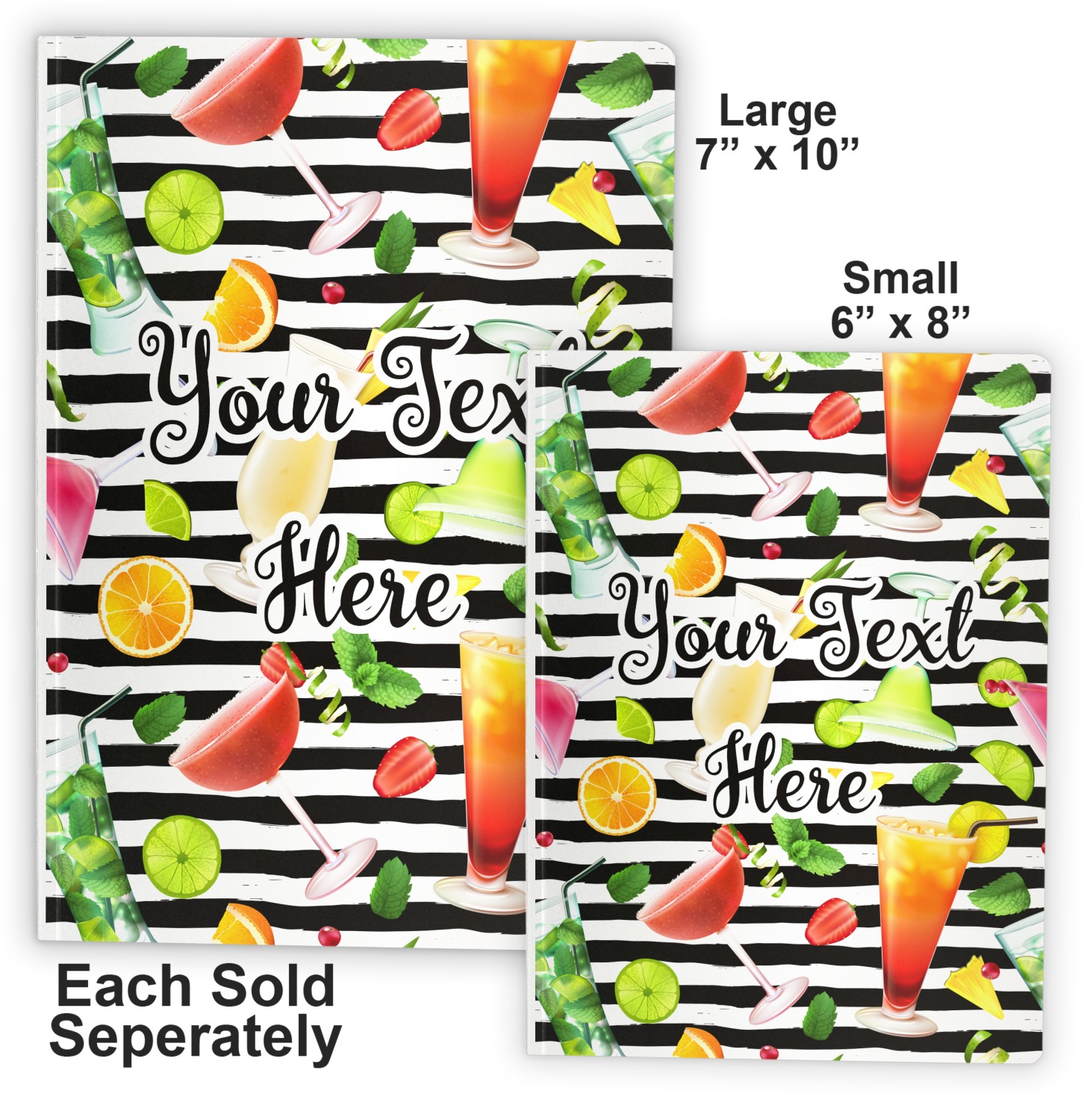 This design has gorgeous illustrations of several different kinds of mixed drinks from mojitos to margaritas. They're are a variety of colors like pink, orange, green, yellow, black, and white. Behind the cocktails is a fun striped pattern giving it a bit of pizazz. You are able to personalize the text with a name, monogram, or whatever you like.