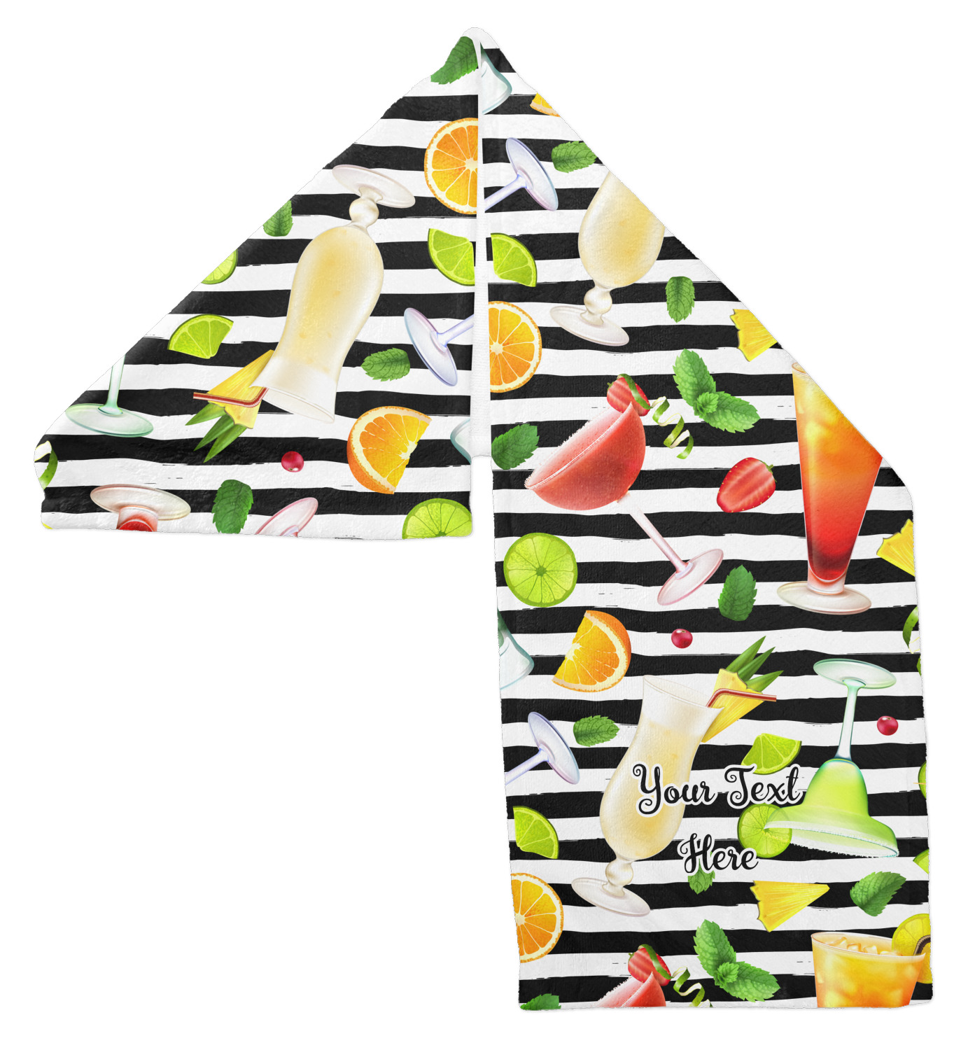 This design has gorgeous illustrations of several different kinds of mixed drinks from mojitos to margaritas. They're are a variety of colors like pink, orange, green, yellow, black, and white. Behind the cocktails is a fun striped pattern giving it a bit of pizazz. You are able to personalize the text with a name, monogram, or whatever you like.