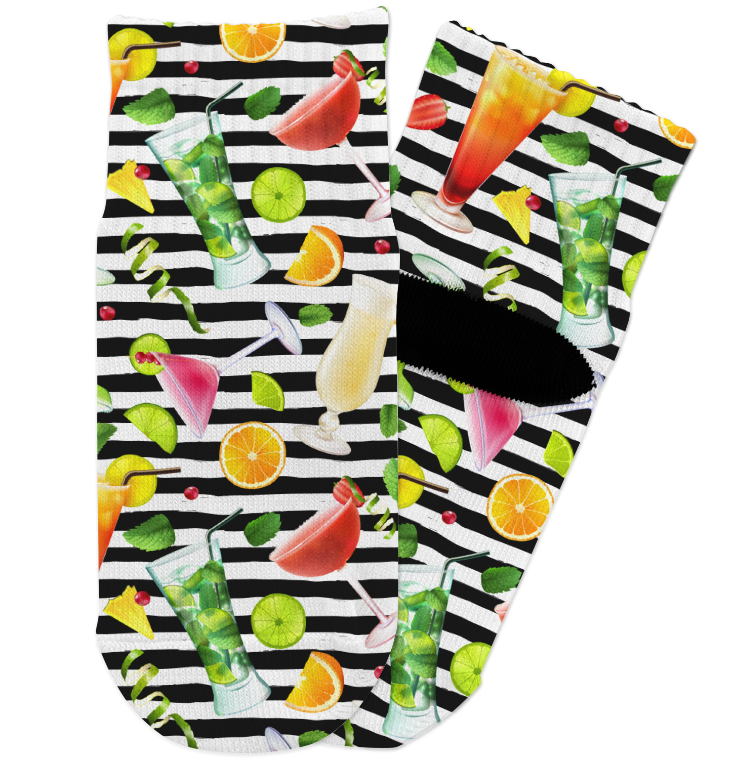 This design has gorgeous illustrations of several different kinds of mixed drinks from mojitos to margaritas. They're are a variety of colors like pink, orange, green, yellow, black, and white. Behind the cocktails is a fun striped pattern giving it a bit of pizazz. You are able to personalize the text with a name, monogram, or whatever you like.