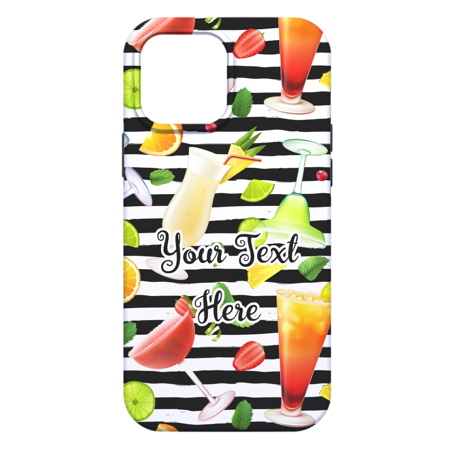 This design has gorgeous illustrations of several different kinds of mixed drinks from mojitos to margaritas. They're are a variety of colors like pink, orange, green, yellow, black, and white. Behind the cocktails is a fun striped pattern giving it a bit of pizazz. You are able to personalize the text with a name, monogram, or whatever you like.