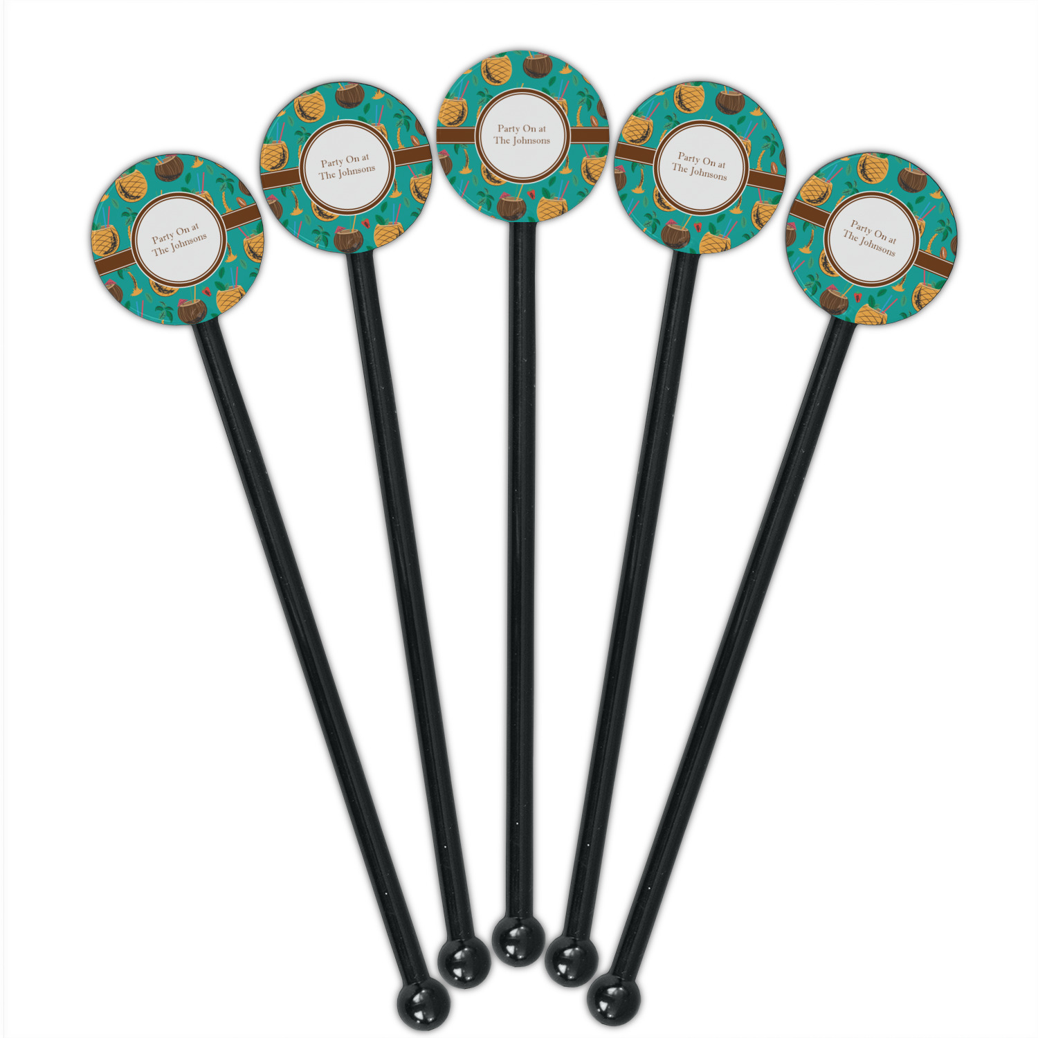 Palm Trees Designs for 5.5" Round Plastic Stir Sticks - Black - Double-Sided