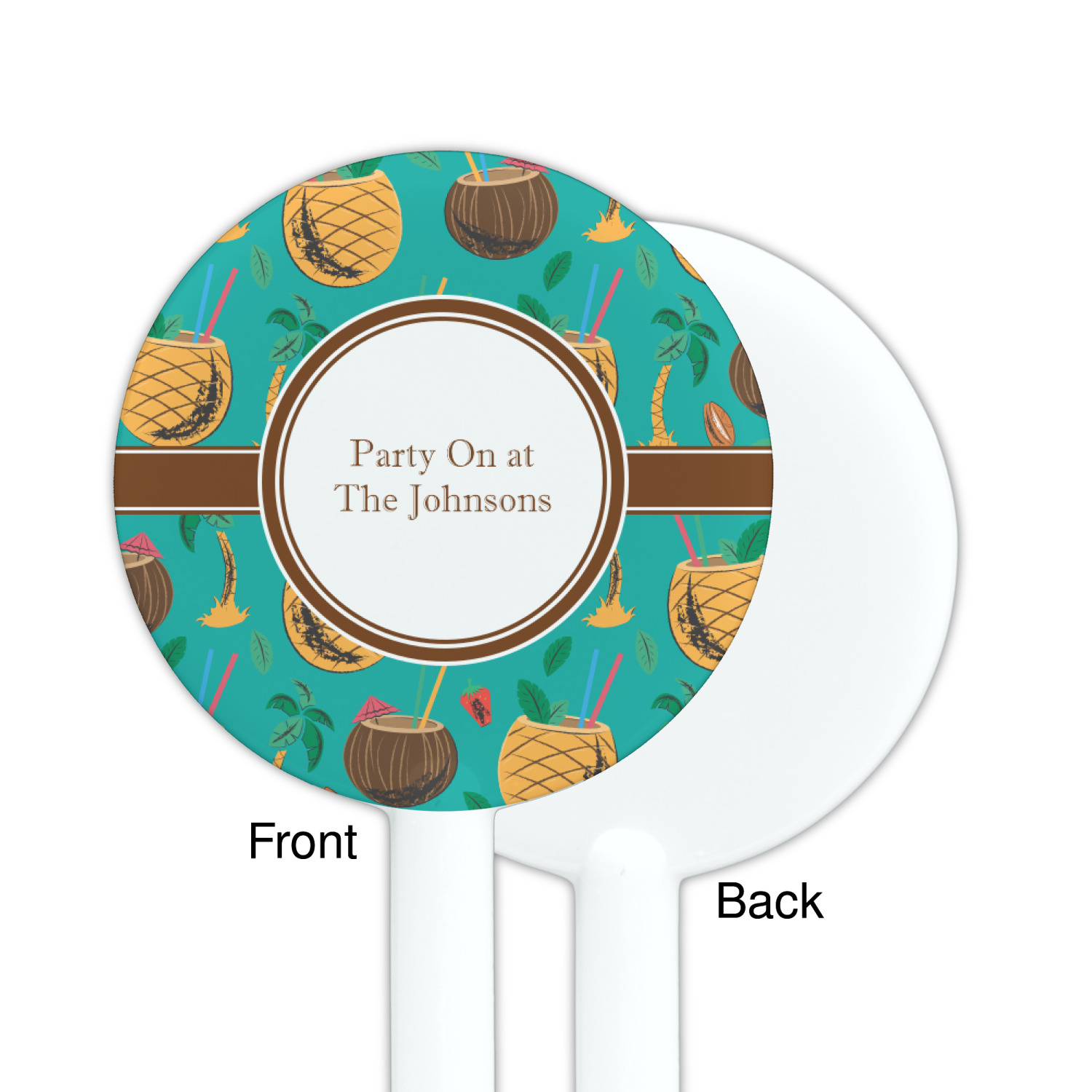 Palm Trees Designs for 5.5" Round Plastic Stir Sticks - White - Single-Sided