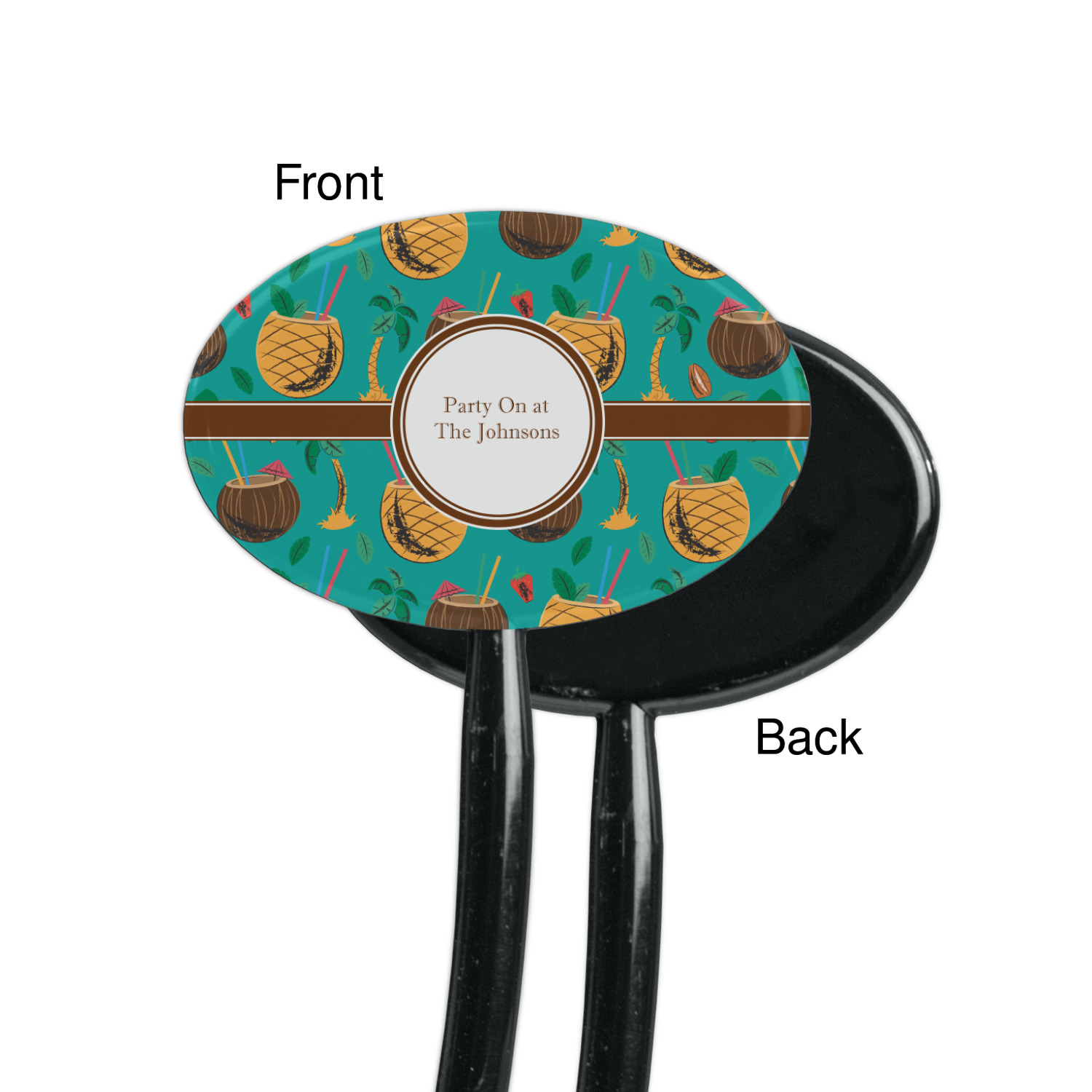 Palm Trees Designs for 7" Oval Plastic Stir Sticks - Black - Single-Sided