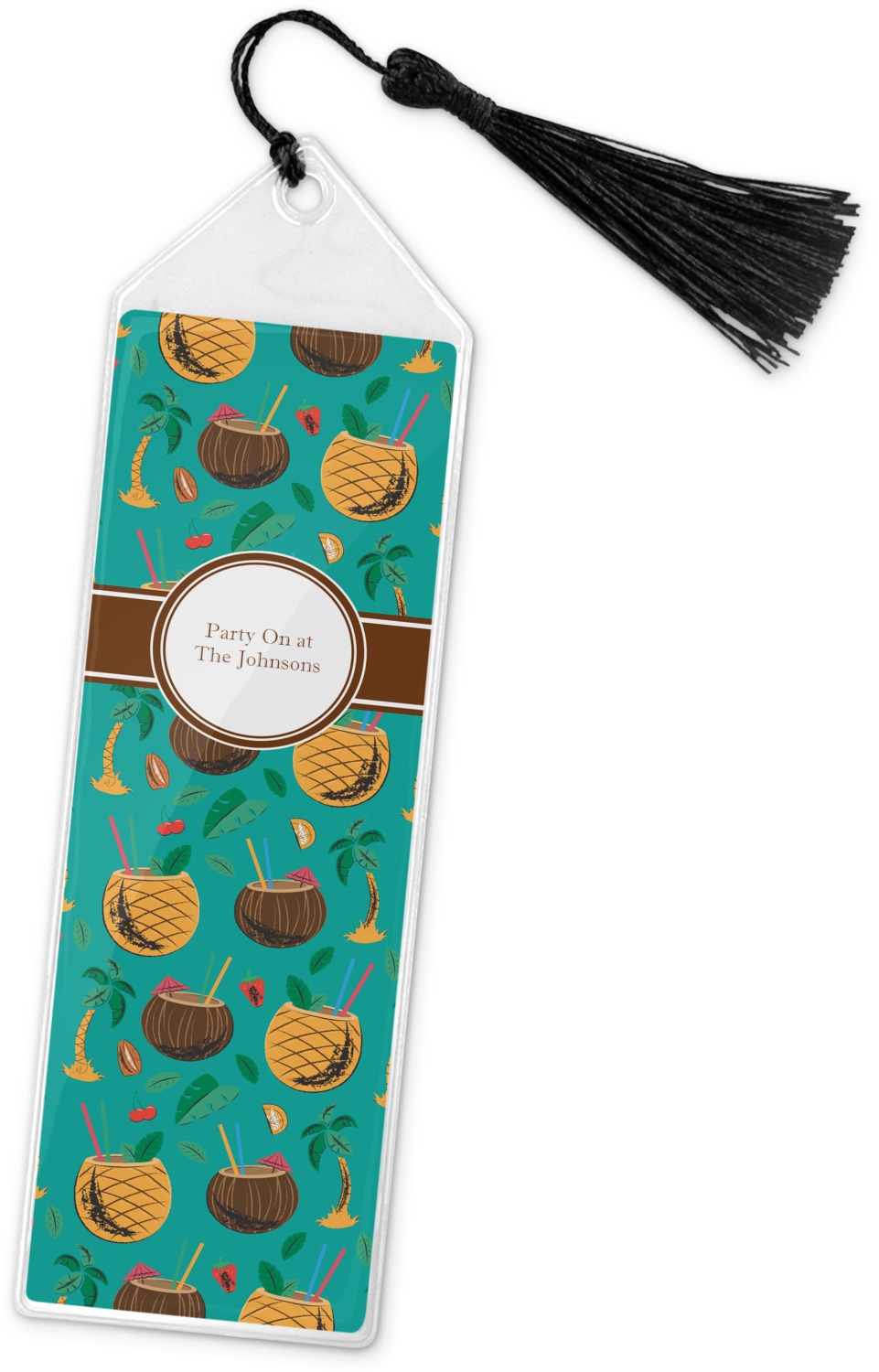 Your personalized bookmark is made of a sturdy, clear vinyl, and is approximately 7.5" x 2.25". We display your personalization on vinyl inserts that are placed on both sides. Accompanying each book marker is a black, fringe tassel that attaches to the reinforced, triangular header.