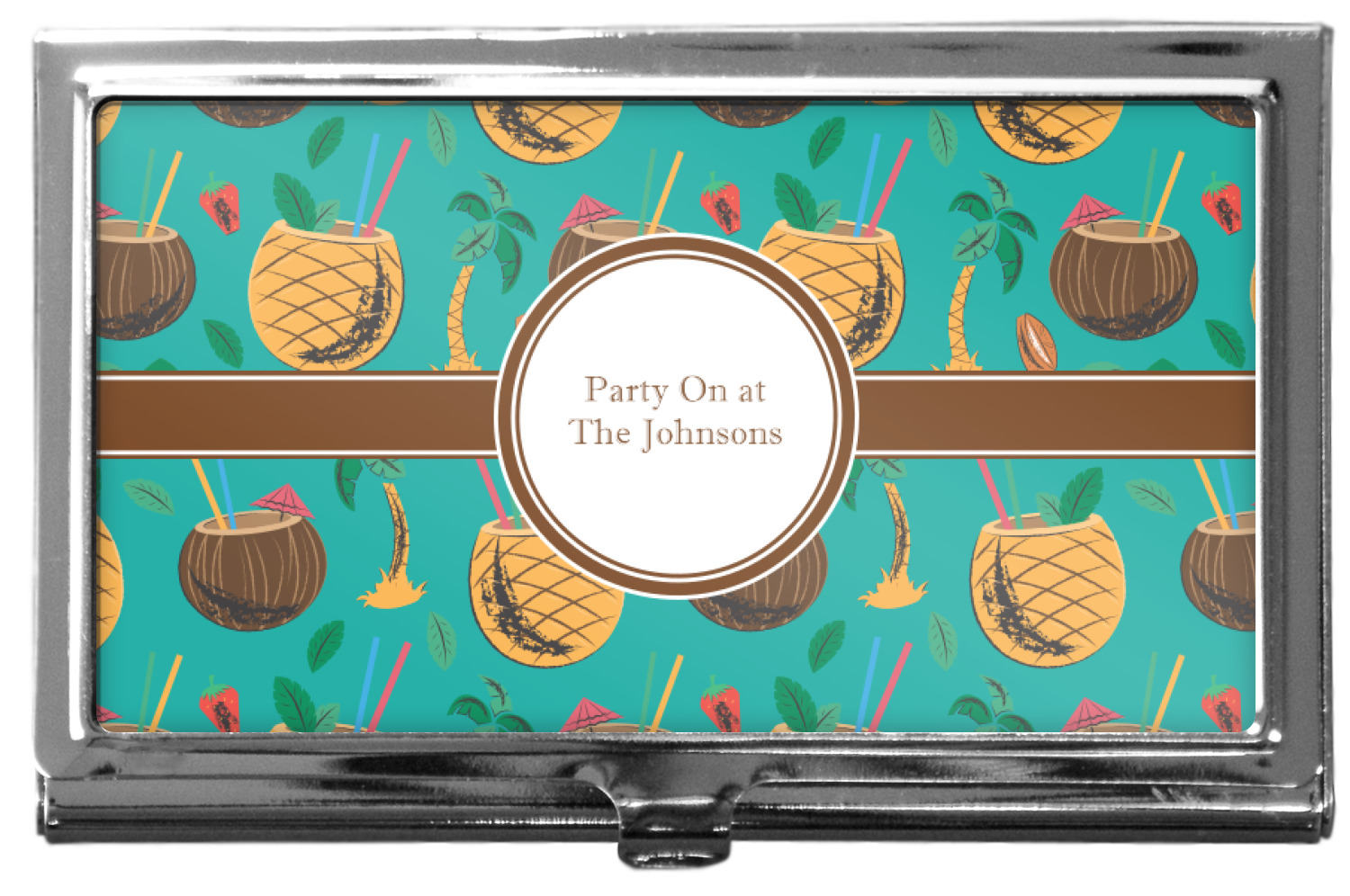 Our personalized business card holders are built from a robust, stainless steel and shaped into a sleek rectangle. At 3.75" x 2.5", and 0.25" thick, this nifty accessory holds up to 12 to 15 business cards, depending on the thickness of the cards themselves. Regardless, the skinny style makes it the perfect fit for your purse or pocket. The lid of your custom business card holder features a protruding tab to open and close your holder with a snap. To protect the mint condition of your cards, the interior of this metal business card holder is lined with a soft, felt fabric. We print your personalized design across the face of the lid.