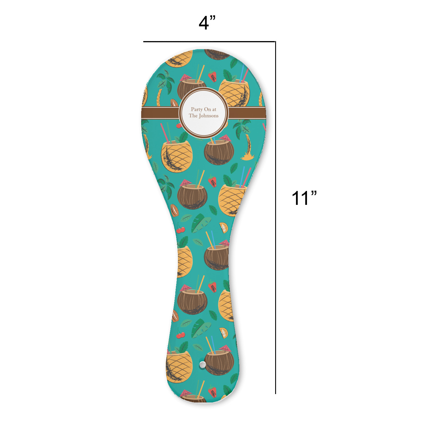 Made from a durable ceramic with a raised foot backer, these spoon rests are 11" long, 4" wide at the spoon section - 2.25" wide at the handle, and stand 0.375" tall. The spoon rest end has a slightly dished out area to ensure any items spilled on it do not run off. On the handle there is a hole in case you want to use it as a decoration in your kitchen it is easy to place on the wall.